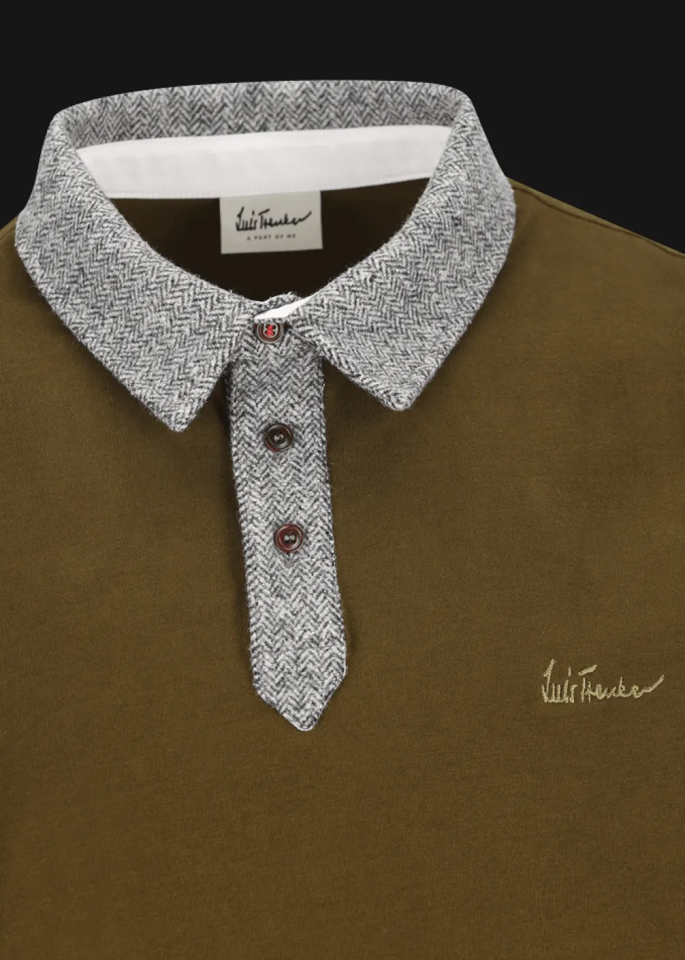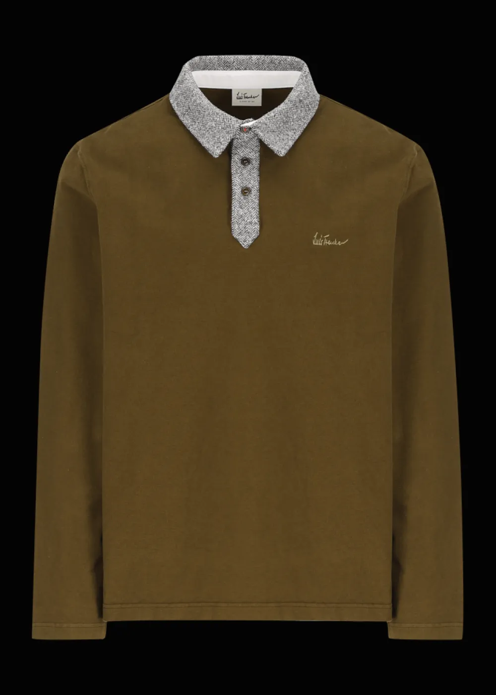 Herkunft: Stoff aus Italien - Besonderheiten: Extra Tragekomfort, Flanell mit Fischgrätmuster als Kontraststoff an Kragen und Knopfleiste, Knöpfe aus pflanzlichem Elfenbein, Luis Trenker Logo als Stickerei auf der Brust