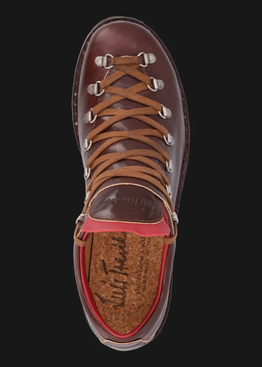 Innensohle: Atmungsaktive Kork-Einlegesohle - Besonderheiten: Geprägtes Luis Trenker Logo an der Lasche, rahmengenähte Machart, in traditioneller Manufaktur in Italien von Hand gefertigt