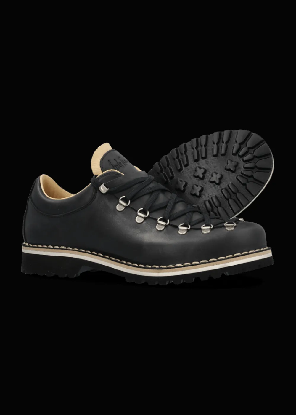 - Dieser rahmengenähte Schnürschuh aus echtem Glattleder mit Vibramsohle und Metallösen im Bergsteigerlook wird in einer Manufaktur in Italien von Hand gefertigt und bringt alpines Feeling in Deine Garderobe.