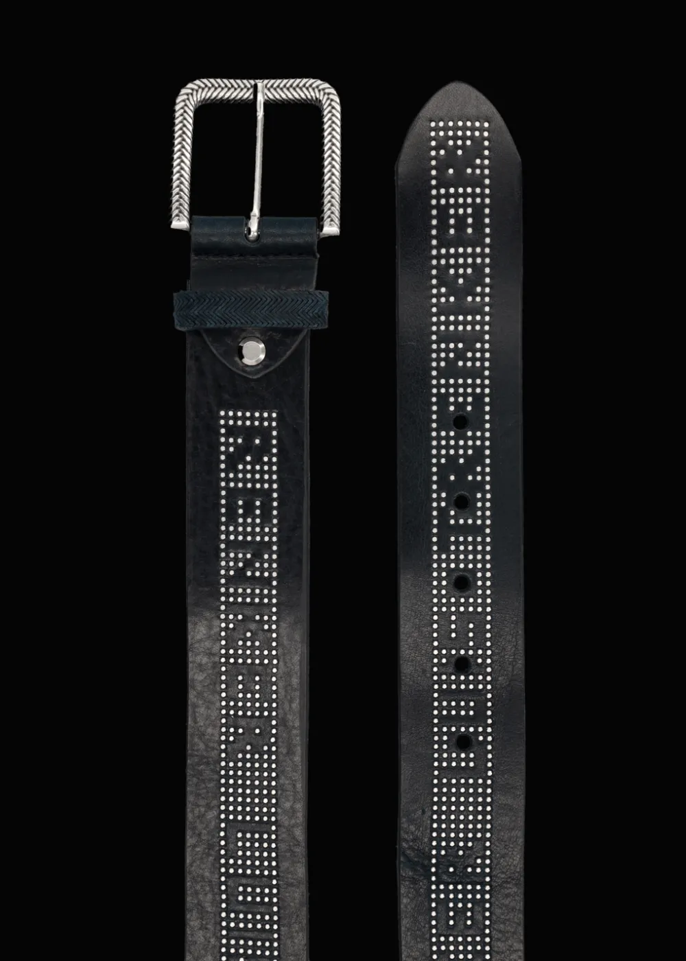 - Dieser Gürtel aus echtem Glattleder mit Nietenbesatz ist durch seinen All-over Luis Trenker Schriftzug ein Statement-Piece für bekennende Fans der Marke. Die metallische Schnalle erhält durch ihre Flechtoptik einen originellen Touch.