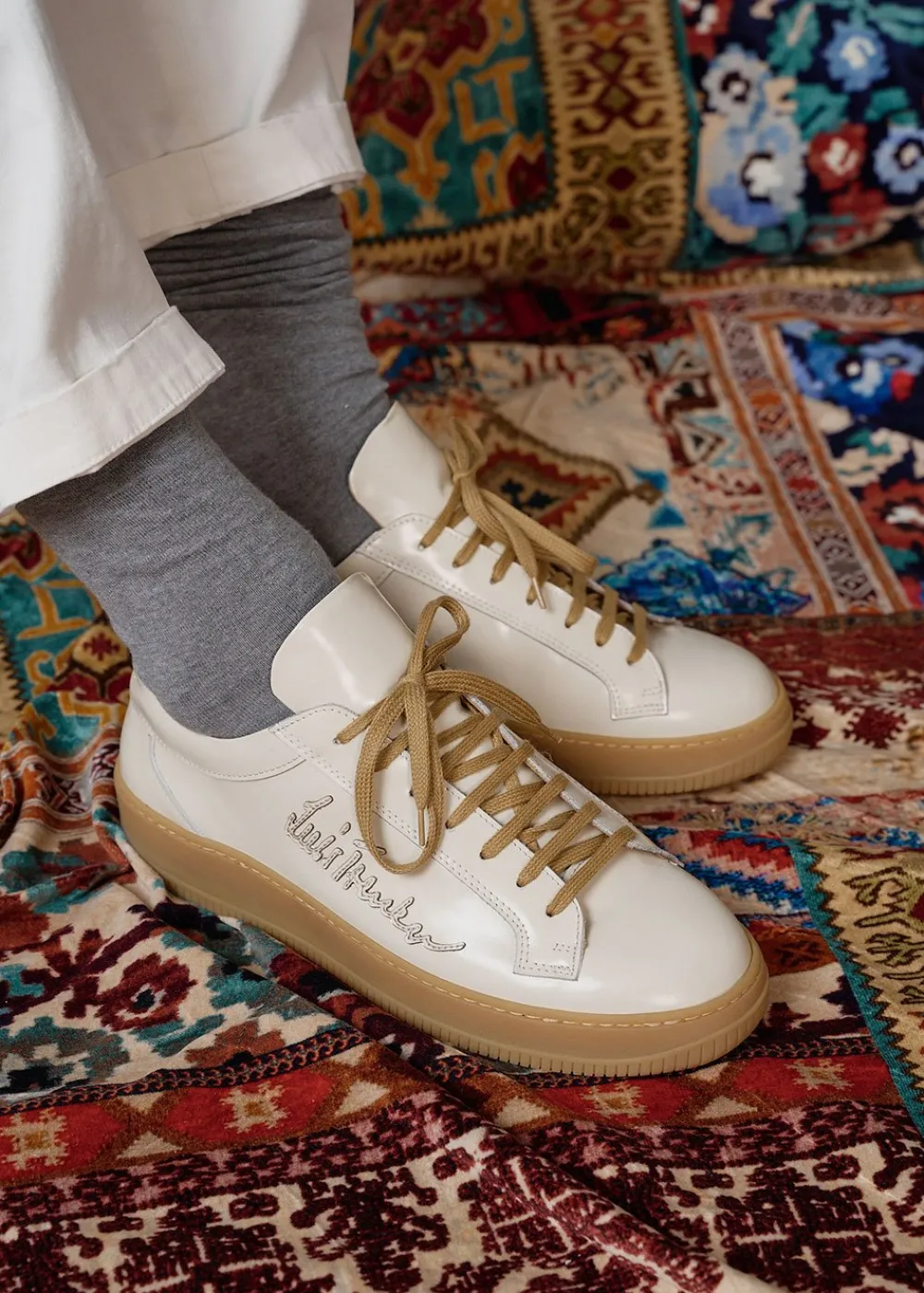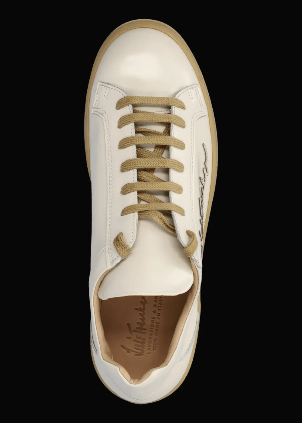 - Dieser handgefertigte Sneaker aus echtem Glattleder verleiht Deinem Look den nötigen Glanz. Die leicht erhöhte Gummisohle und die Innensohle aus weichem Leder sorgen für ganztägigen Komfort.