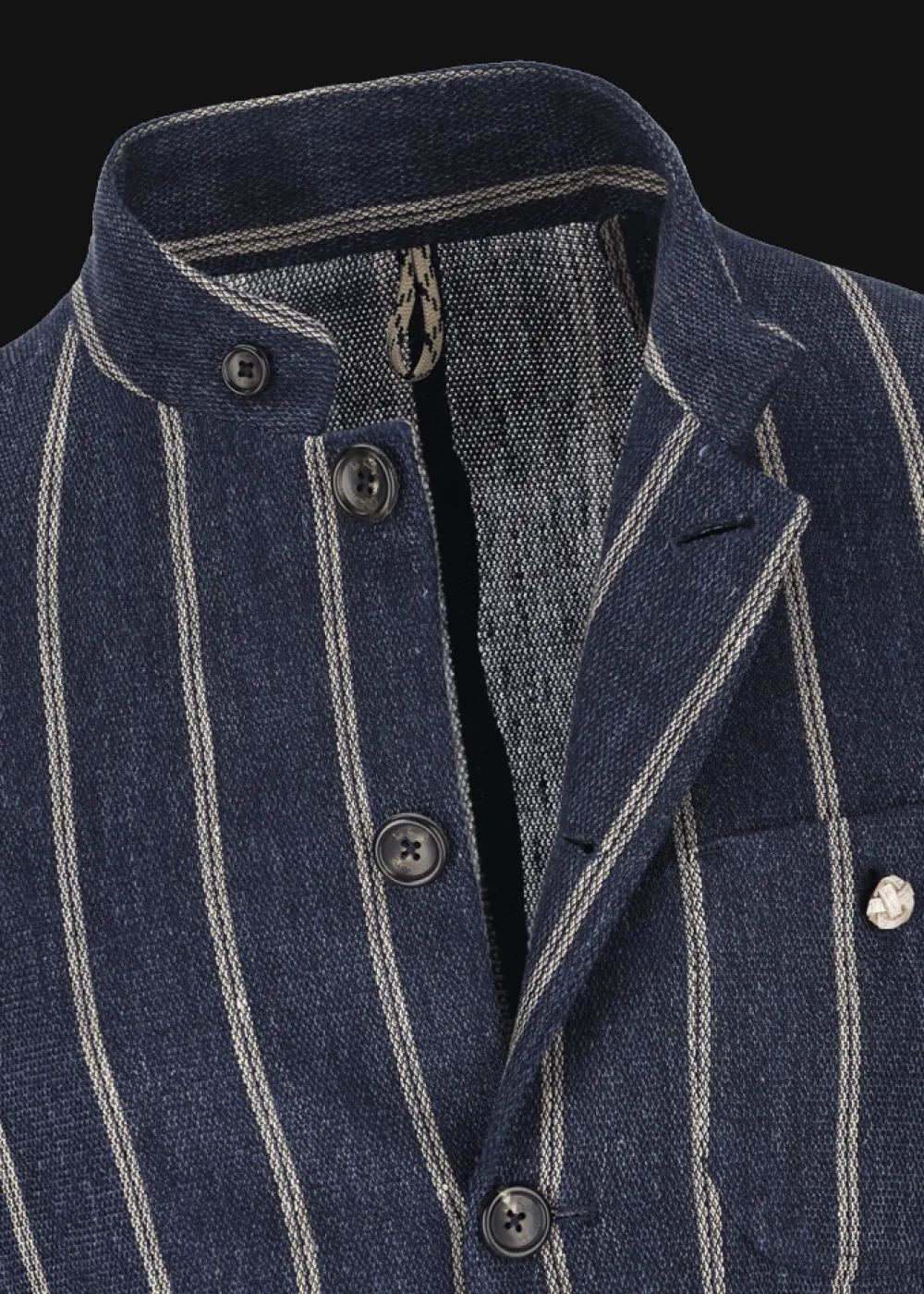 - Dieses klassische Blazermodell im Regular Fit mit Stehkragen ist ein fester Bestandteil der Markengeschichte von Luis Trenker: Vom ersten Moment an hat es die Herrenkollektion geprägt und ist seither in jeder Saison vertreten. Diese ungefütterte Variante besteht aus reinem Leinen, verarbeitet zu elegantem Piqué mit Nadelstreifen. Mit ihrer Innenkonstruktion im Stil einer maßgeschneiderten Jacke ist sie ein Zeugnis echter italienischer Schneiderkunst.