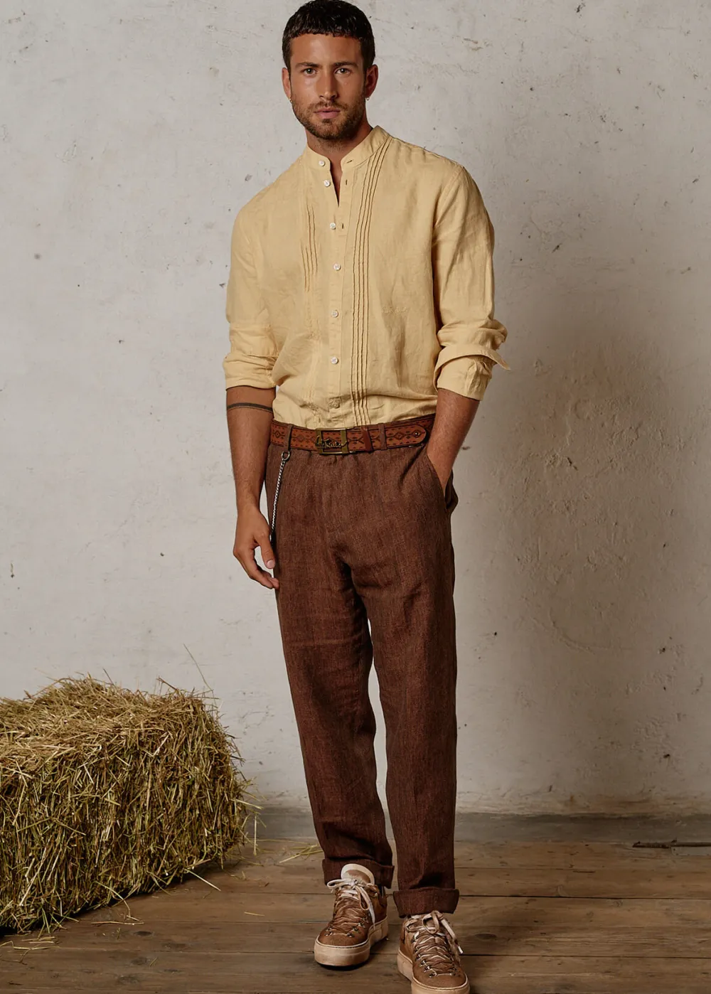 Besonderheiten: Stückgefärbtes Leinen, Plissee entlang der Knopfleiste, dezente Logostickerei an der linken Brust - Unser Model Valentin ist 1,82 m groß und trägt Größe L.
