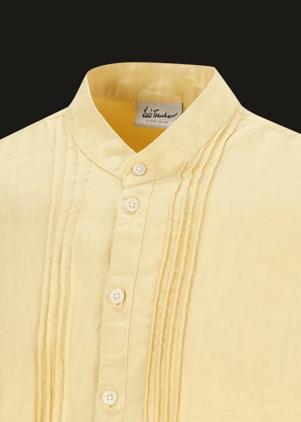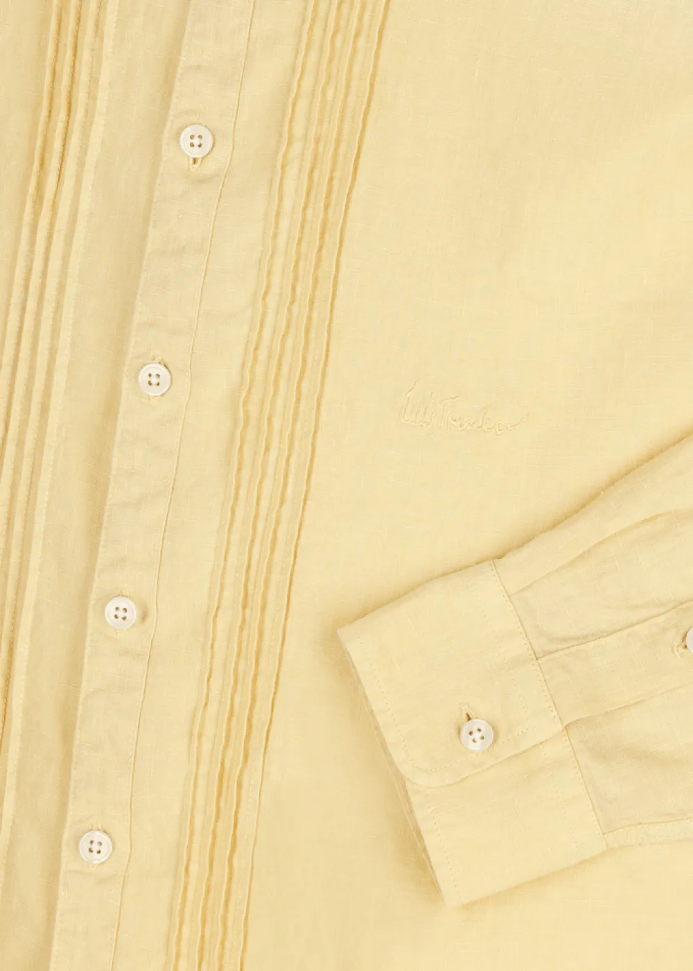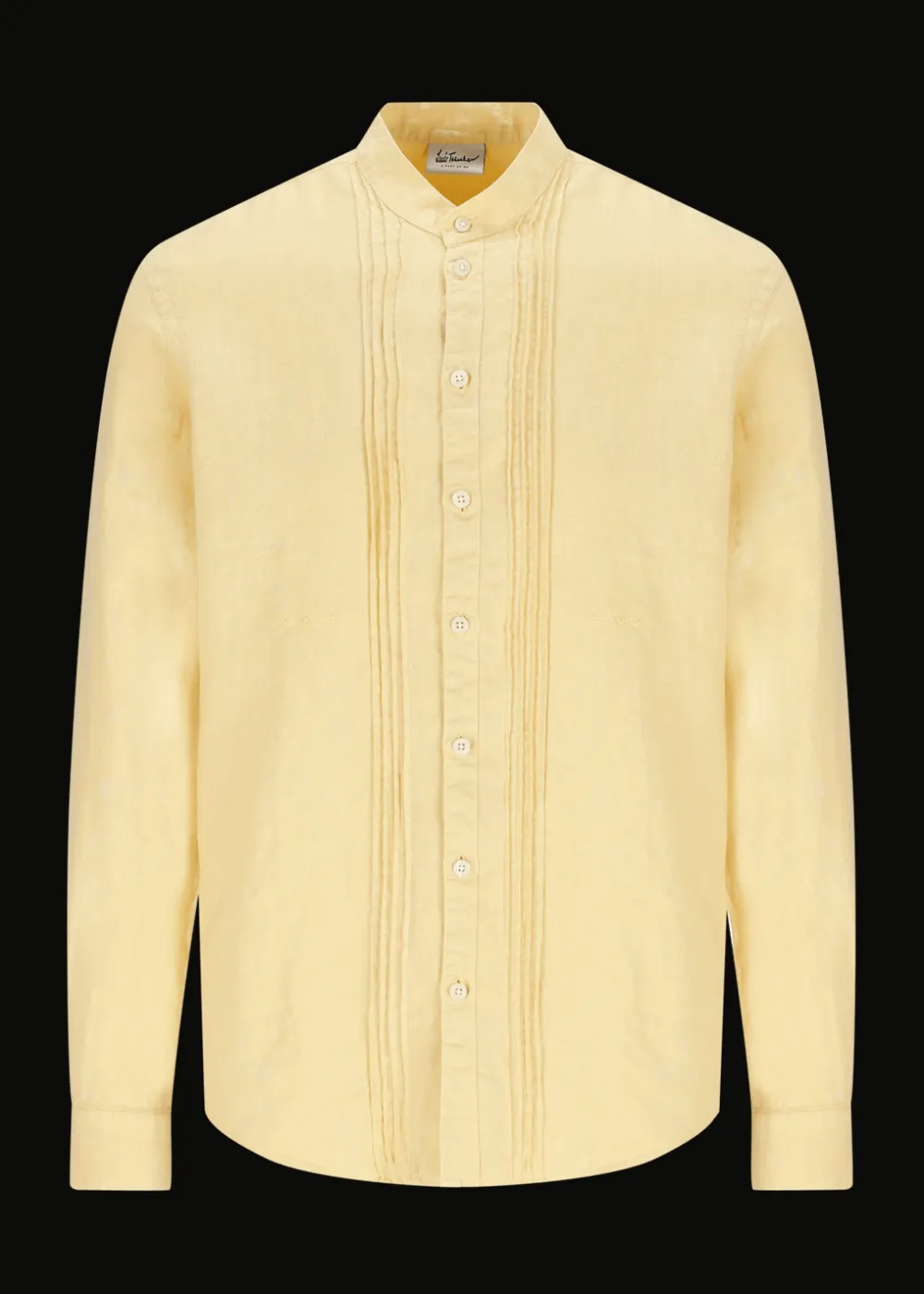 Knopfleiste: Durchgehende Knopfleiste - Besonderheiten: Stückgefärbtes Leinen, Plissee entlang der Knopfleiste, dezente Logostickerei an der linken Brust