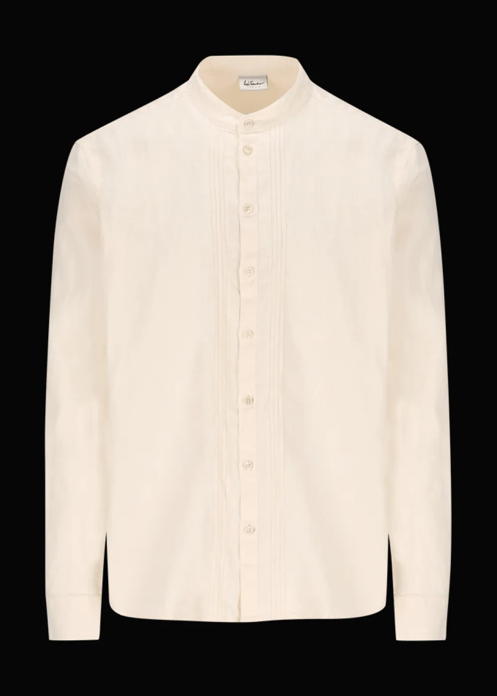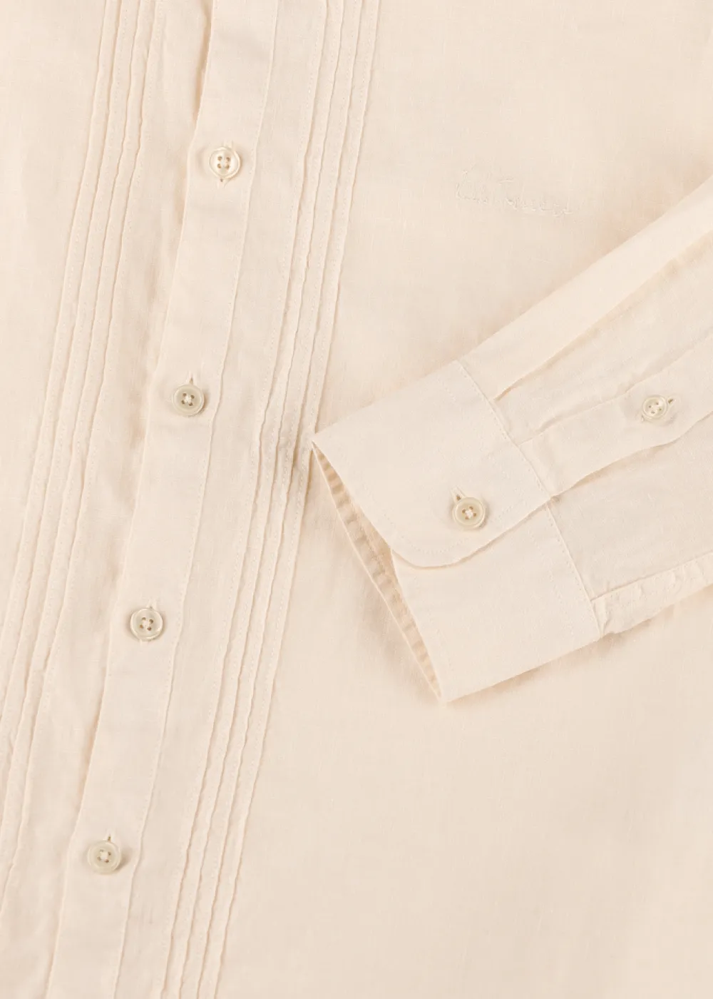 Knopfleiste: Durchgehende Knopfleiste - Besonderheiten: Stückgefärbtes Leinen, Plissee entlang der Knopfleiste, dezente Logostickerei an der linken Brust