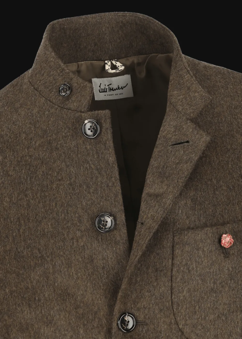 Futter: Vollständig gefüttert - Besonderheiten: Extrafeiner Merino-Loden-Wollstoff eines renommierten österreichischen Familienbetriebs, überzeugt durch besonders weiche Haptik und langlebige Qualität, Logoplakette in Hornoptik an der linken Tasche