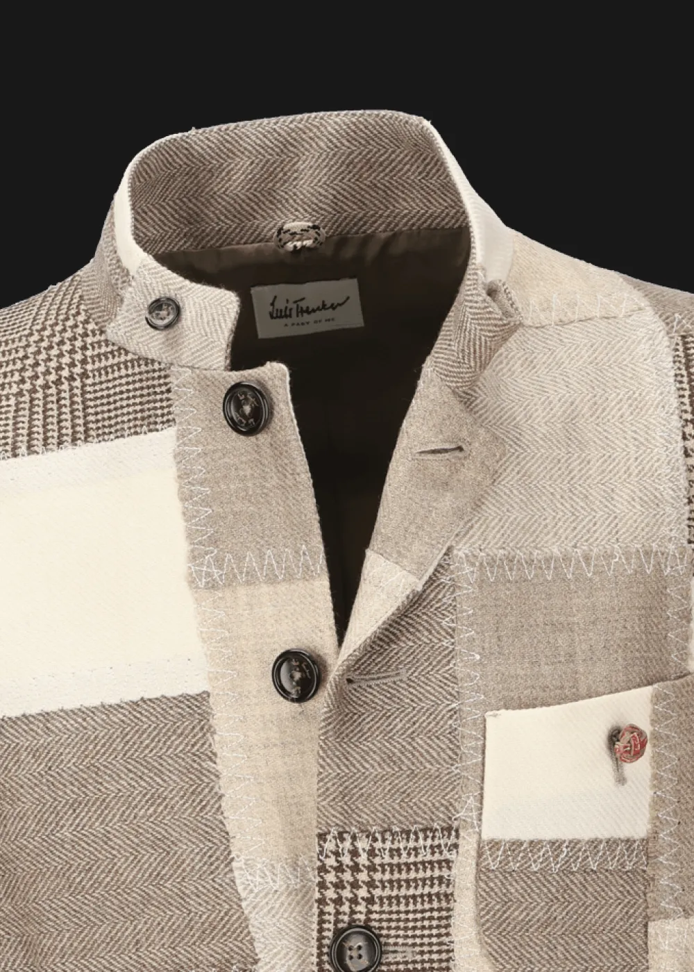 - Diese Variante unseres klassischen Blazermodells Lusandro im Regular Fit mit Stehkragen besteht aus Schurwolle mit Stretchanteil und ist ein einzigartiges Kunstwerk aus gleich sechs verschiedenen Stoffen, die in Handarbeit vernäht wurden. Hier sind einzelne hervorstehende Fäden kein Defekt, sondern ein gewollter Effekt, der den Charme dieses unvergleichlichen Sakkos unterstreichen soll.