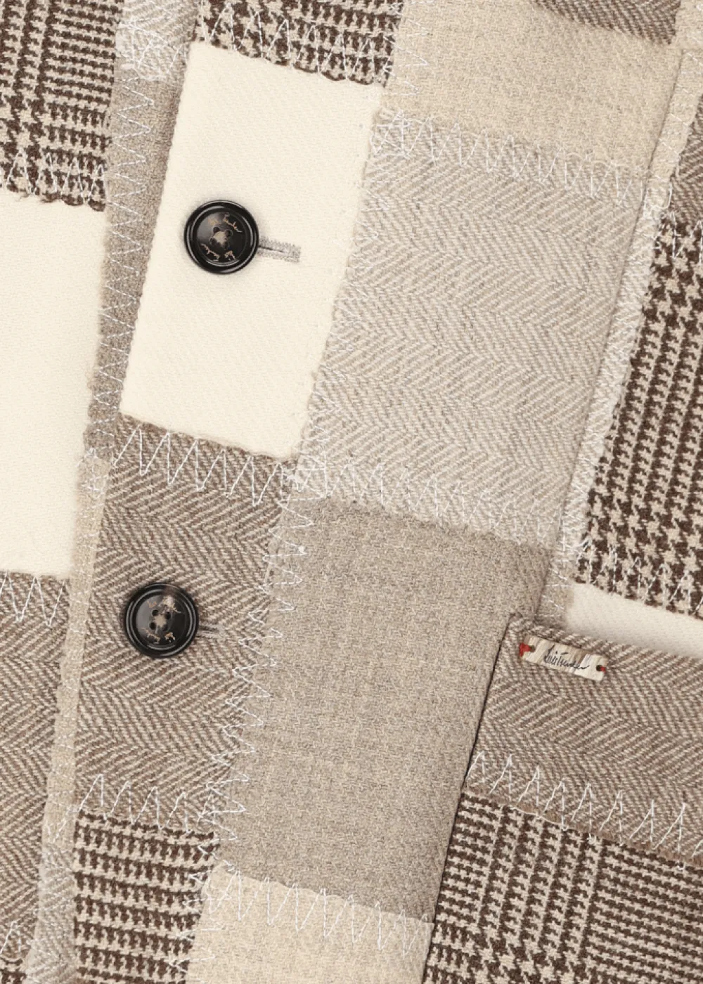 Besonderheiten: Einzigartiges Patchwork aus sechs verschiedenen Stoffen der Kollektion, die in Handarbeit mit Zick-Zack-Nähten zusammengefügt wurden, Logoplakette in Hornoptik an der linken Tasche - Unser Model Federico ist 1,88 m groß und trägt Größe 50.