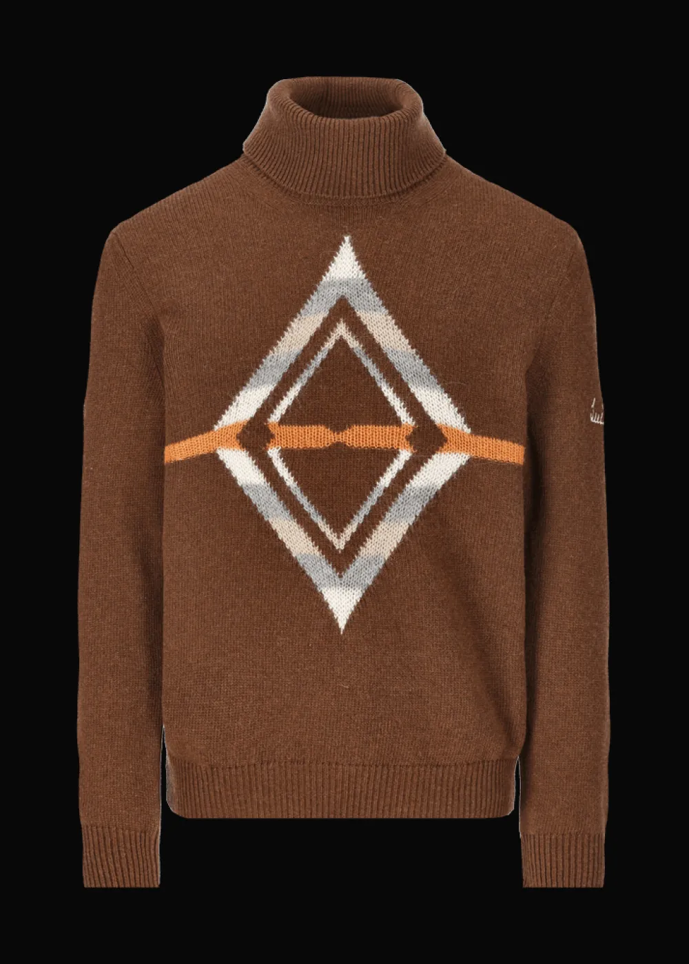 - Dieser Strickpullover im Regular Fit mit Rollkragen besteht aus einer angenehmen, glatt rechts gestrickten Wollmischung. An seiner Vorderseite befindet sich ein großes Jacquard-Motiv im Ethno-Look in Kontrastfarben als besonderer Eyecatcher.