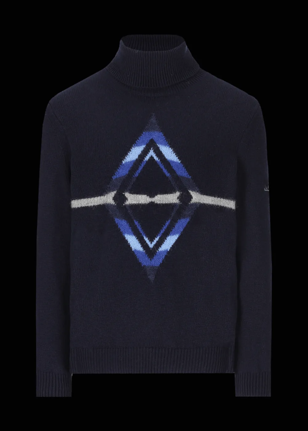 - Dieser Strickpullover im Regular Fit mit Rollkragen besteht aus einer angenehmen, glatt rechts gestrickten Wollmischung. An seiner Vorderseite befindet sich ein großes Jacquard-Motiv im Ethno-Look in Kontrastfarben als besonderer Eyecatcher.
