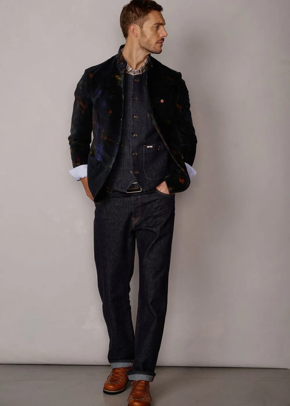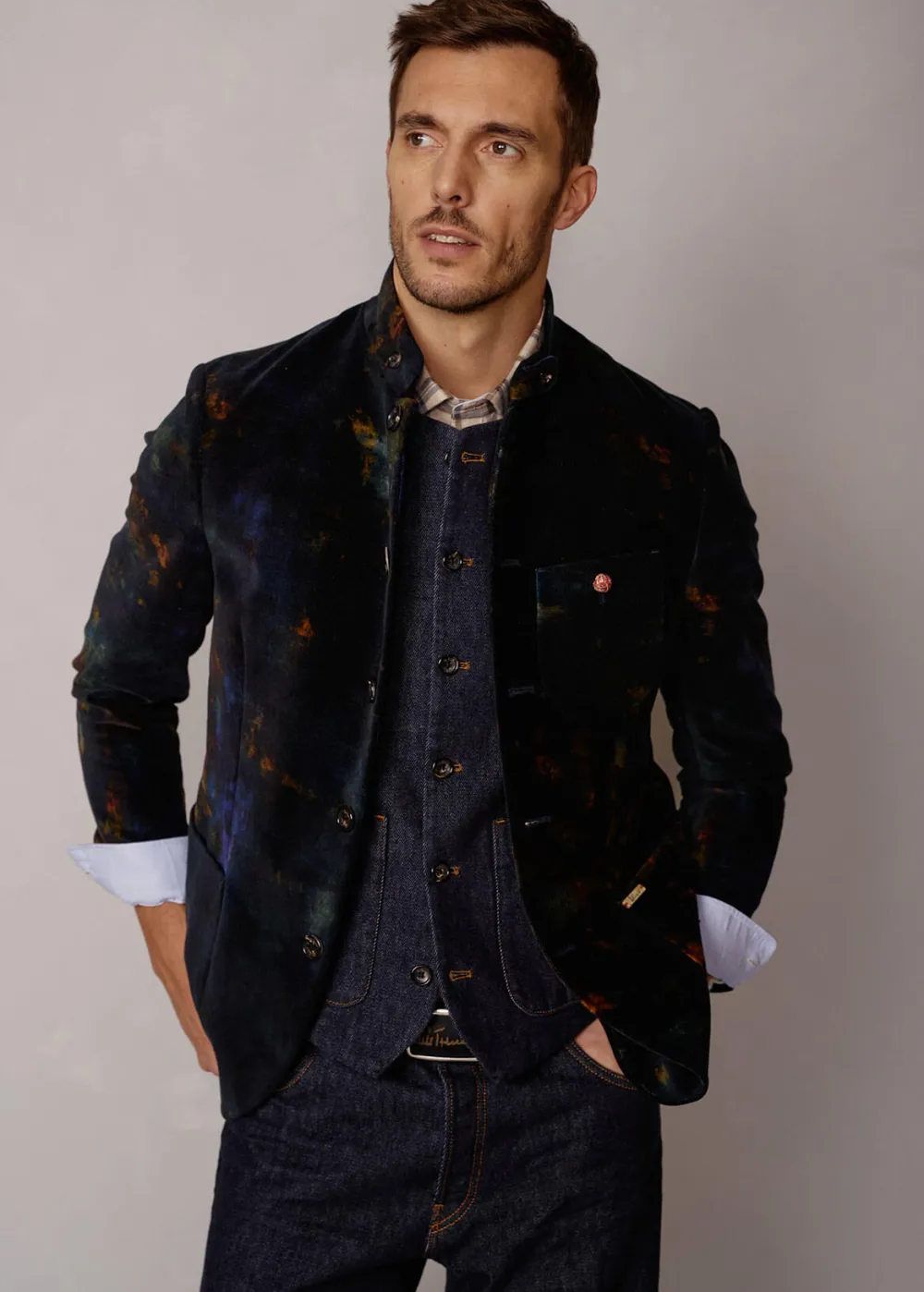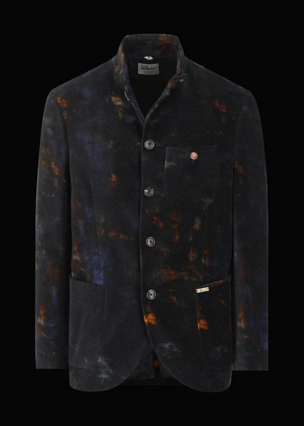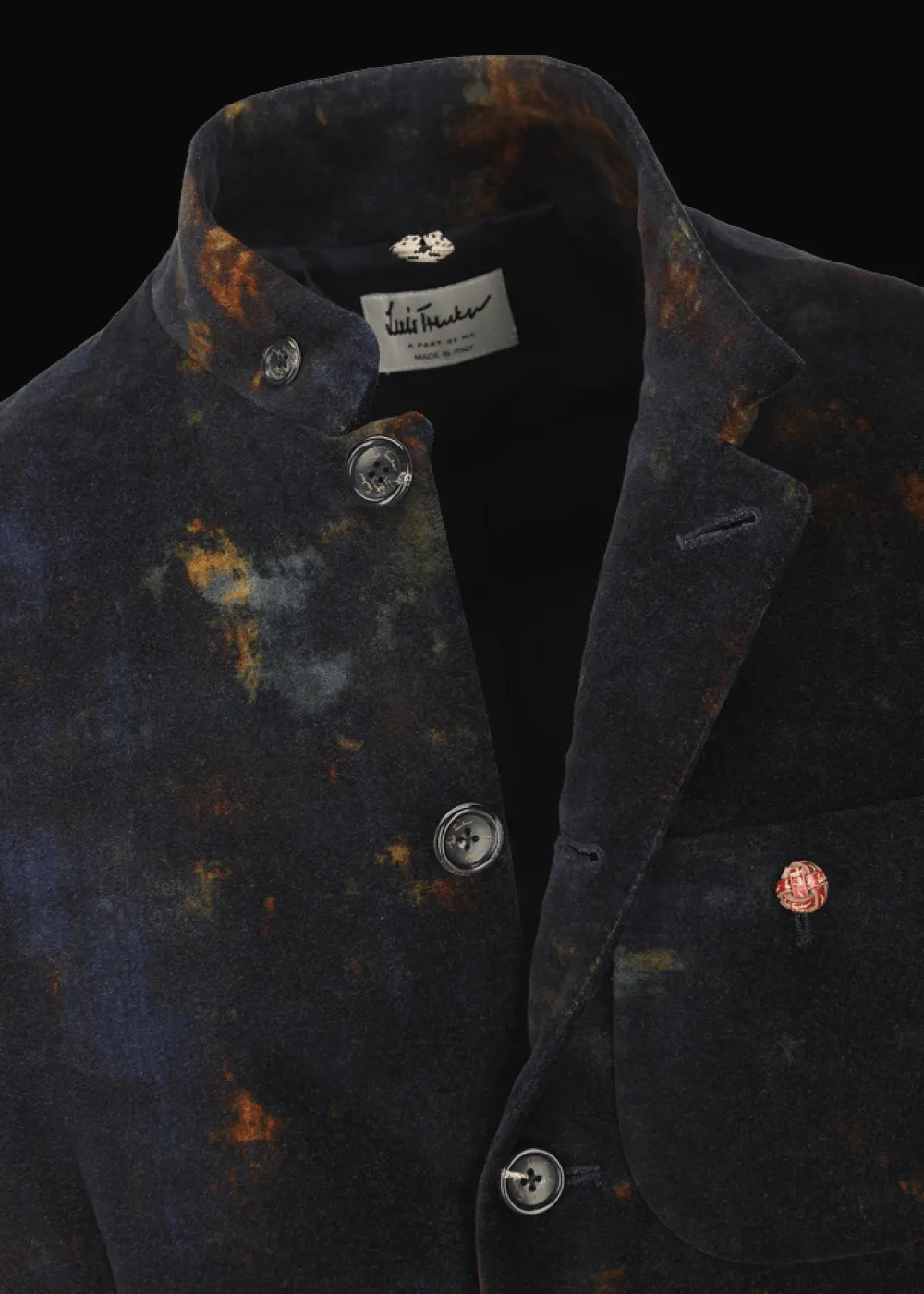 - Dieses klassische Blazermodell im Regular Fit mit Stehkragen ist ein fester Bestandteil der Markengeschichte von Luis Trenker: Vom ersten Moment an hat es die Herrenkollektion geprägt und ist seither in jeder Saison vertreten. In dieser Variante aus hochwertigem Baumwollsamt mit exklusiv für Luis Trenker designtem, camouflage-artigem Print, wird der Klassiker zum einzigartigen Hingucker.