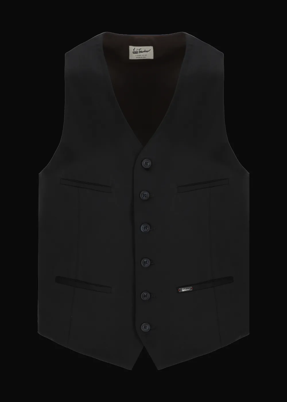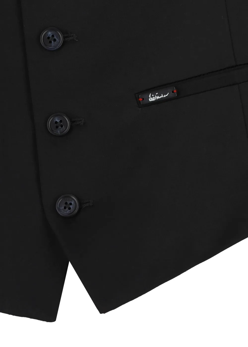 - Diese einreihige Weste im Regular Fit mit V-Ausschnitt besteht aus einer angenehmen Mischung aus Baumwolle und Viskose, die als matt-schwarzes Satin eine besonders elegante Figur macht. In Schwarz gehalten sind auch die Knöpfe aus Bio-Horn und die charakteristische Logoplakette an einer der vier Paspeltaschen.