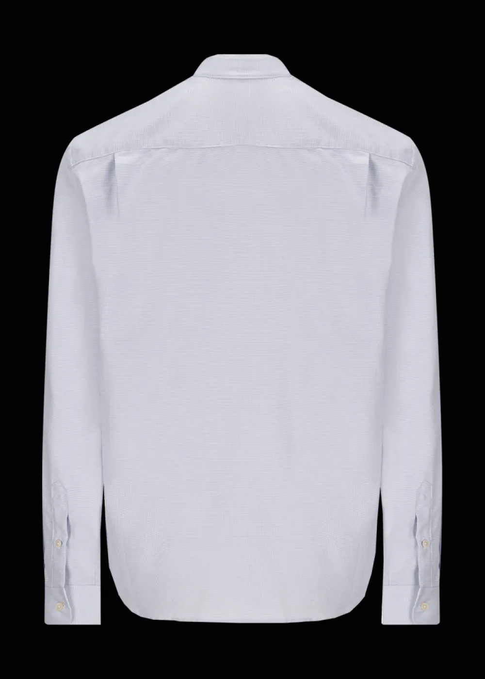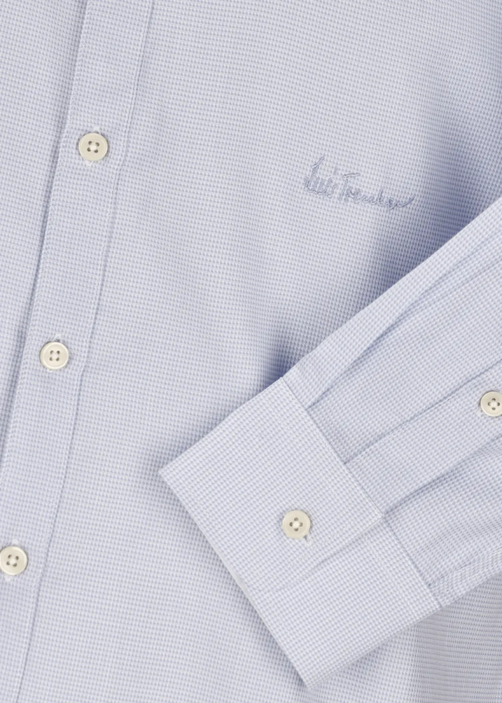 Knopfleiste: Durchgehende Knopfleiste - Besonderheiten: Akzente in strukturiertem Baumwollstoff in Kontrastfarbe an den Innenseiten von Kragen und Manschette, kleines gesticktes Logo an der linken Seite