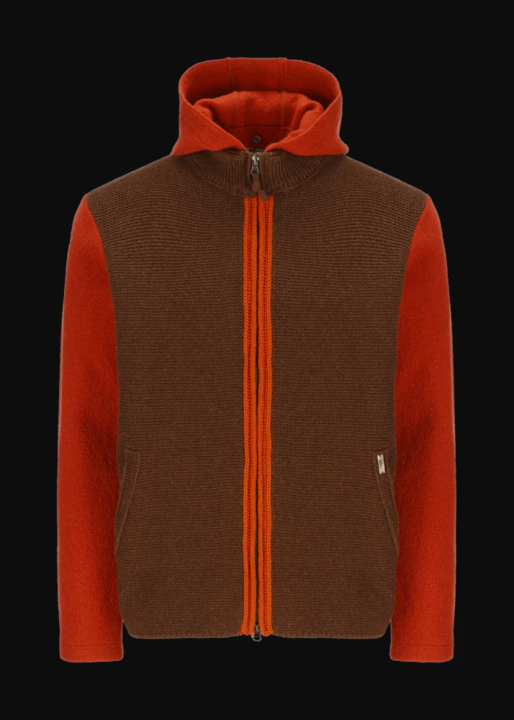 Herkunft: In Italien gefertigt - Besonderheiten: Extra Tragekomfort, Vorderteil traditionell im Stil der „Sarner Janker“ links gestrickt, Logoplakette in Holzoptik an der linken Tasche