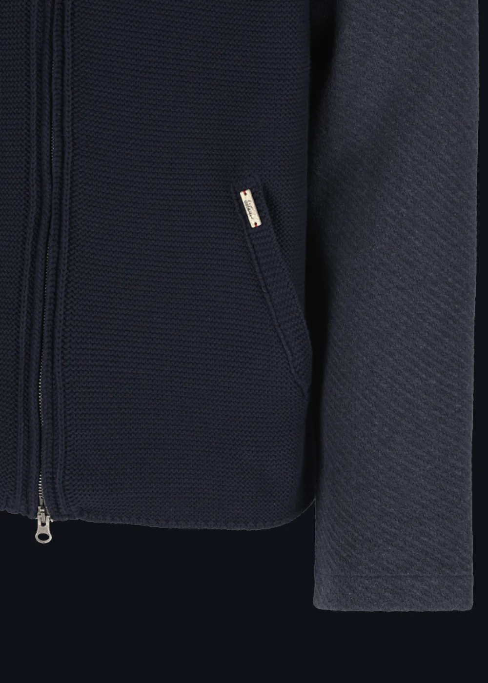 Herkunft: In Italien gefertigt - Besonderheiten: Extra Tragekomfort, Vorderteil traditionell im Stil der „Sarner Janker“ links gestrickt, Logoplakette in Hornoptik an der linken Tasche