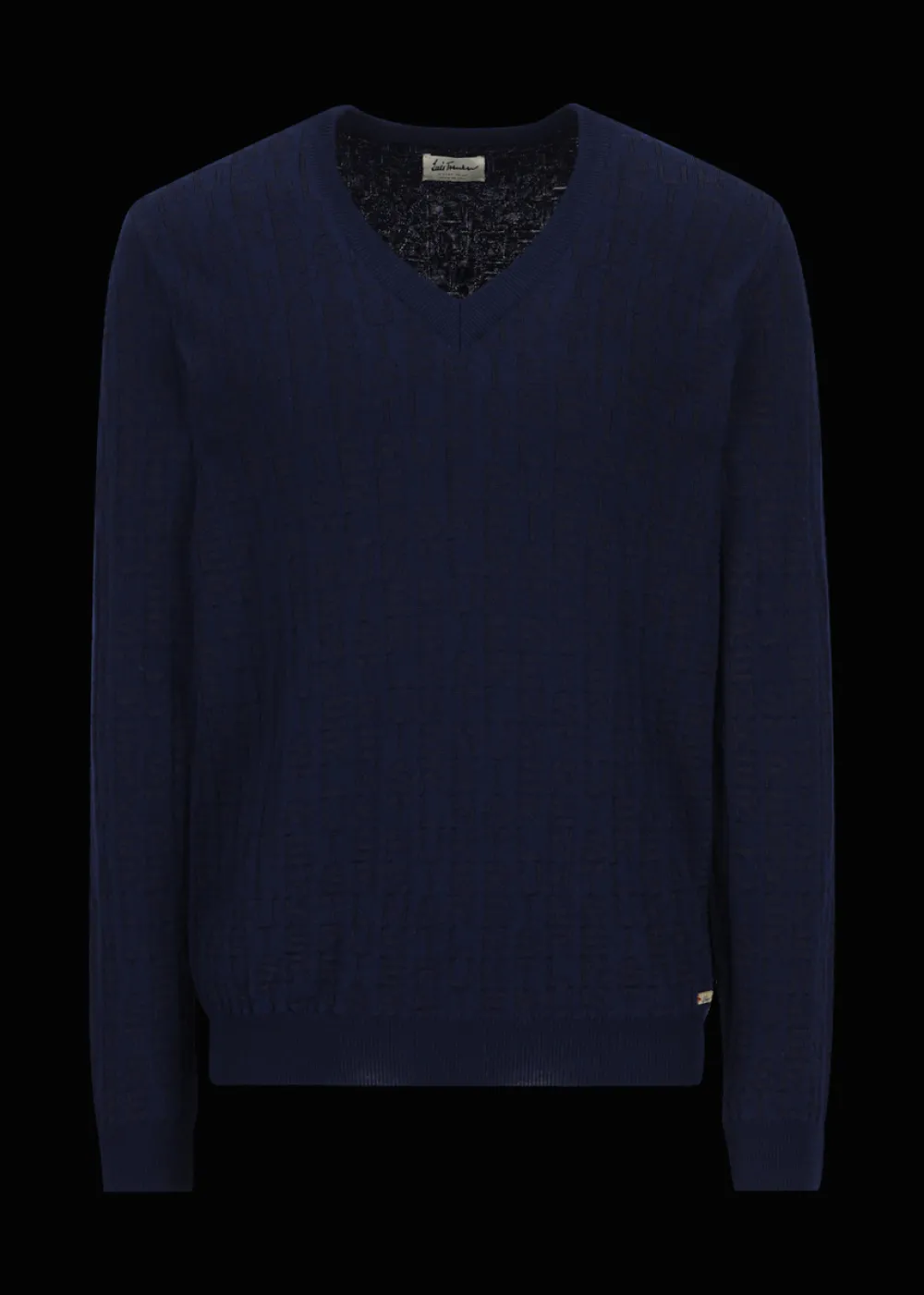 - Dieser Strickpullover im Regular Fit mit V-Ausschnitt ist dank seinem All-Over Jacquard-Schriftzug, vertikal als „Luis Trenker“ lesbar, ein einzigartiges Lieblingsteil für Fans der Marke. Er besteht aus Merinowolle und Viskose, was für ein angenehmes Hautgefühl sorgt und gleichzeitig warmhält.