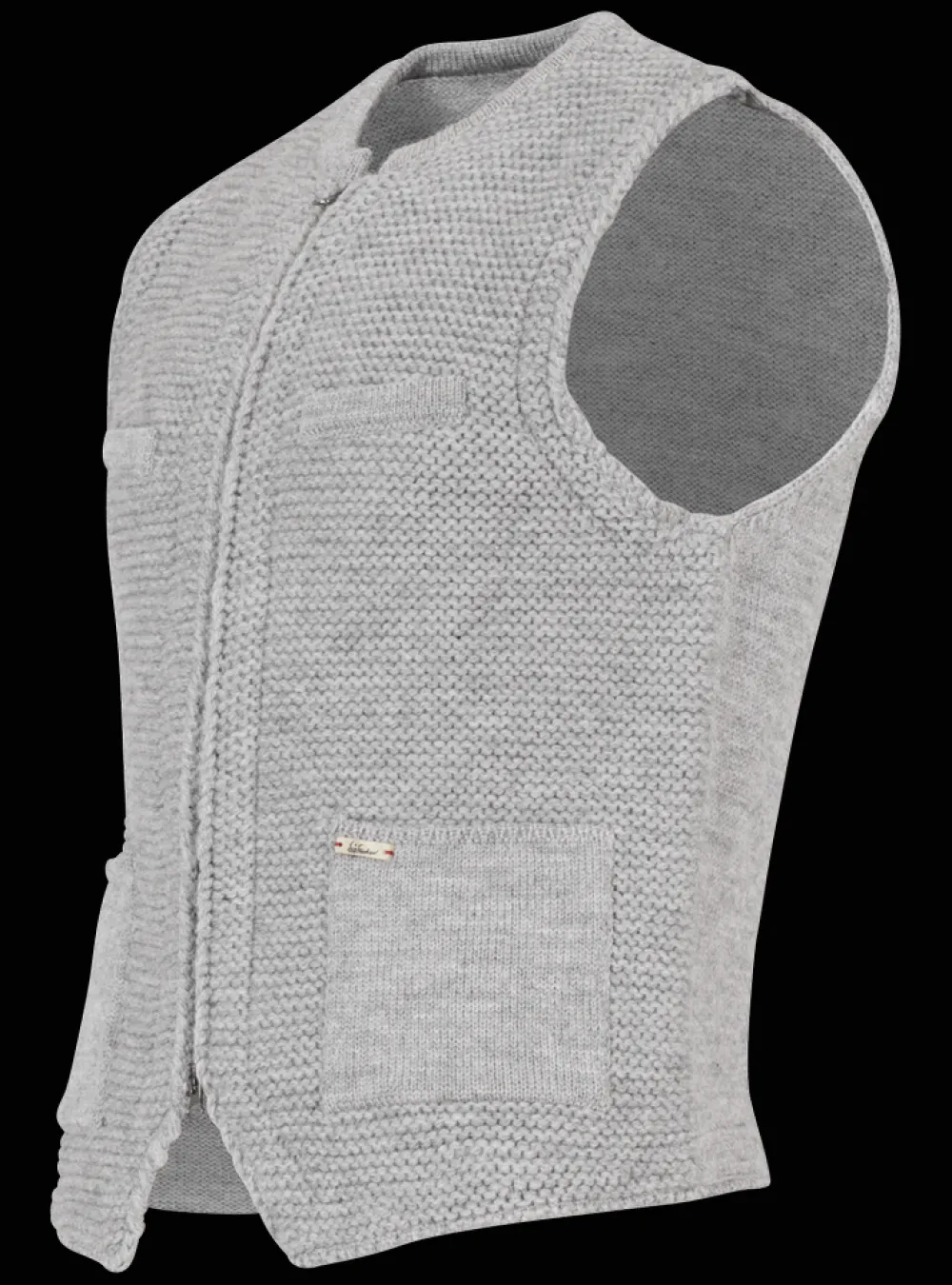 Herkunft: In Italien gefertigt - Besonderheiten: Vorderseite traditionell im Stil der „Sarner Janker“ links gestrickt, Rücken und Taschen glatt rechts gestrickt, Logoplakette in Holzoptik an der linken Tasche