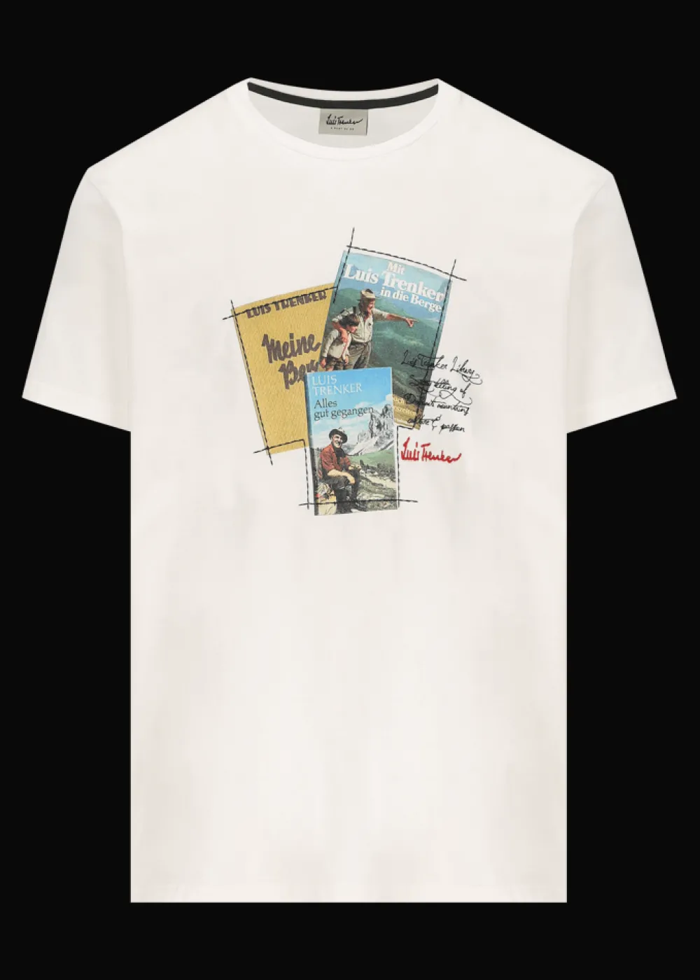 - Dieses T-Shirt im Regular Fit mit kurzen Ärmeln und Rundhalsausschnitt besteht aus reiner Baumwolle und besticht durch einen nostalgischen Fotoprint dreier Luis Trenker Buchcover.