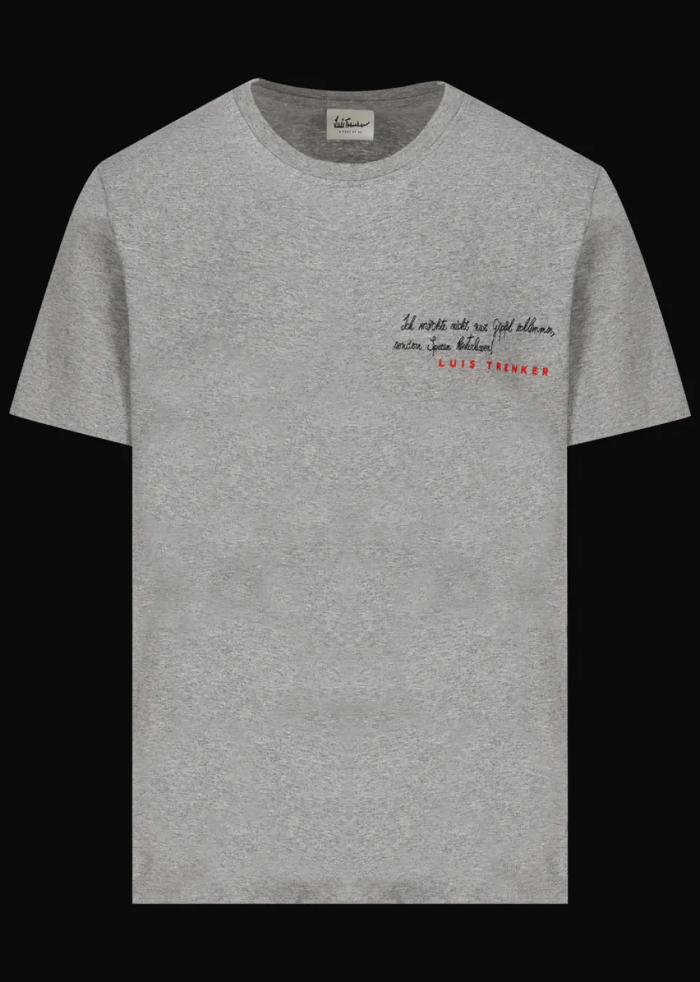 Ausschnitt: Rundhals - Besonderheiten: Gerippt am Ausschnitt, gestickter Schriftzug in handschriftlicher Optik, Luis Trenker als Print in Kontrastfarbe