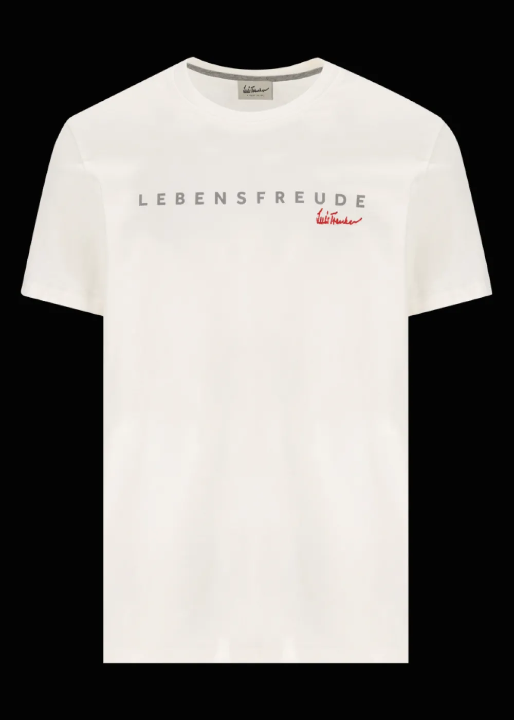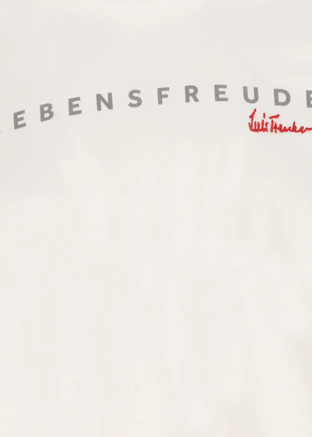 - Dieses T-Shirt im Regular Fit mit kurzen Ärmeln und Rundhalsausschnitt besteht aus reiner Baumwolle und sorgt mit seinem Schriftzug „Lebensfreude“ als Print auf der Brust für gute Laune im Alltag.