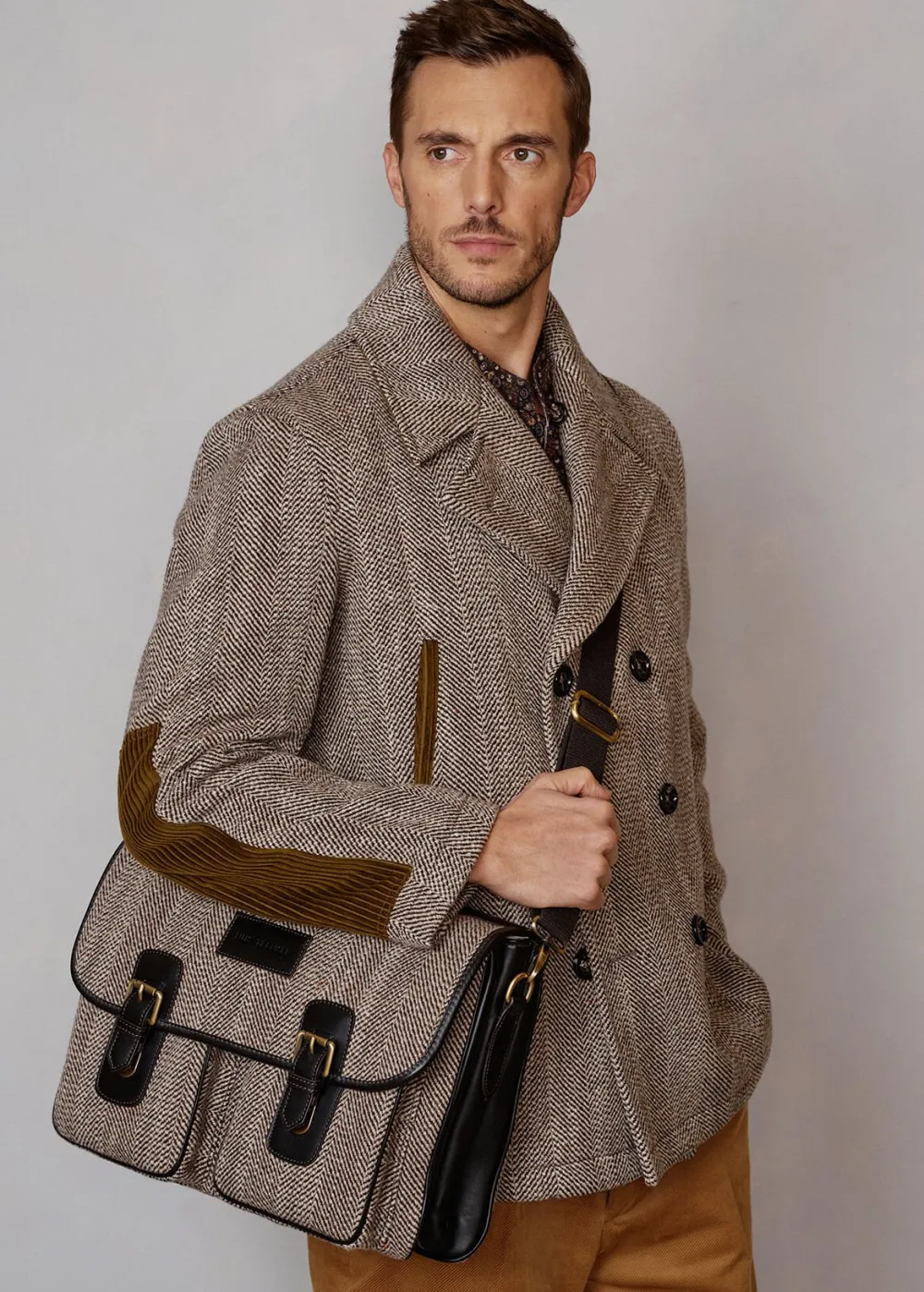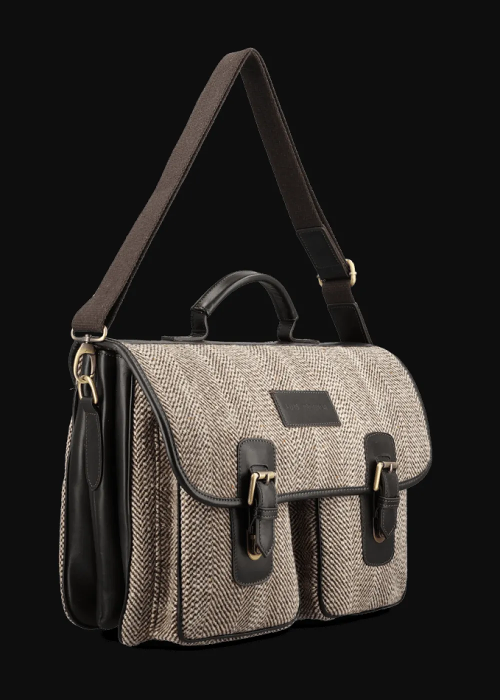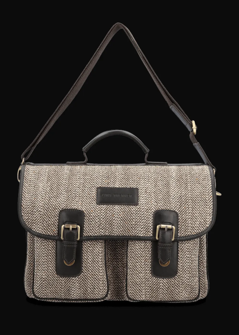 - Diese stilvolle Umhängetasche besteht aus einer hochwertigen Wollmischung mit Fischgrätmuster und versprüht einen Hauch von College-Charme. Ihre beiden aufgesetzten Vordertaschen, das geräumige Hauptfach, der verstellbare Schultergurt und die Details aus Echtleder machen sie zu einem vielseitigen Accessoire für jeden Tag.