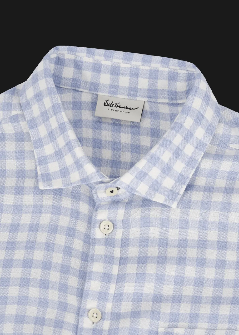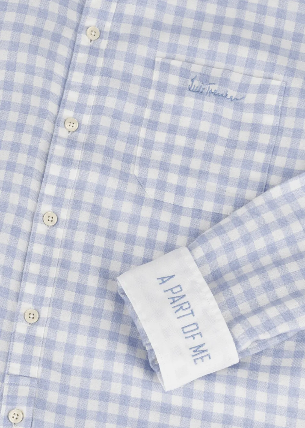 Knopfleiste: Durchgehende Knopfleiste - Besonderheiten: Aufgesetzte Tasche mit gesticktem Logo an der Brust, Unterkragen und Innenmanschette im Kontraststoff, „a part of me“ Stickerei innen an der Manschette