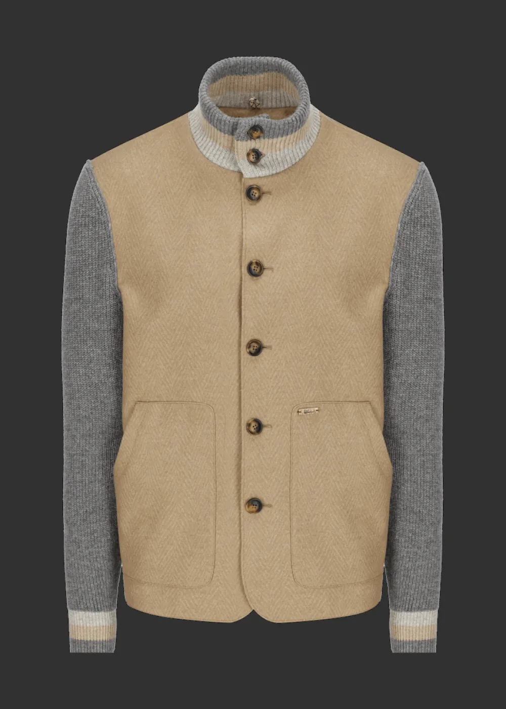 - Dieser ungefütterte Blazer im Regular Fit mit Stehkragen besteht aus einem zu Walk verarbeiteten Wolljersey mit Fischgrätmuster. Der Kragen und die Ärmel aus reiner Schurwolle im Rippstrick mit Kontraststreifen verleihen ihm einen sportlichen Charakter.