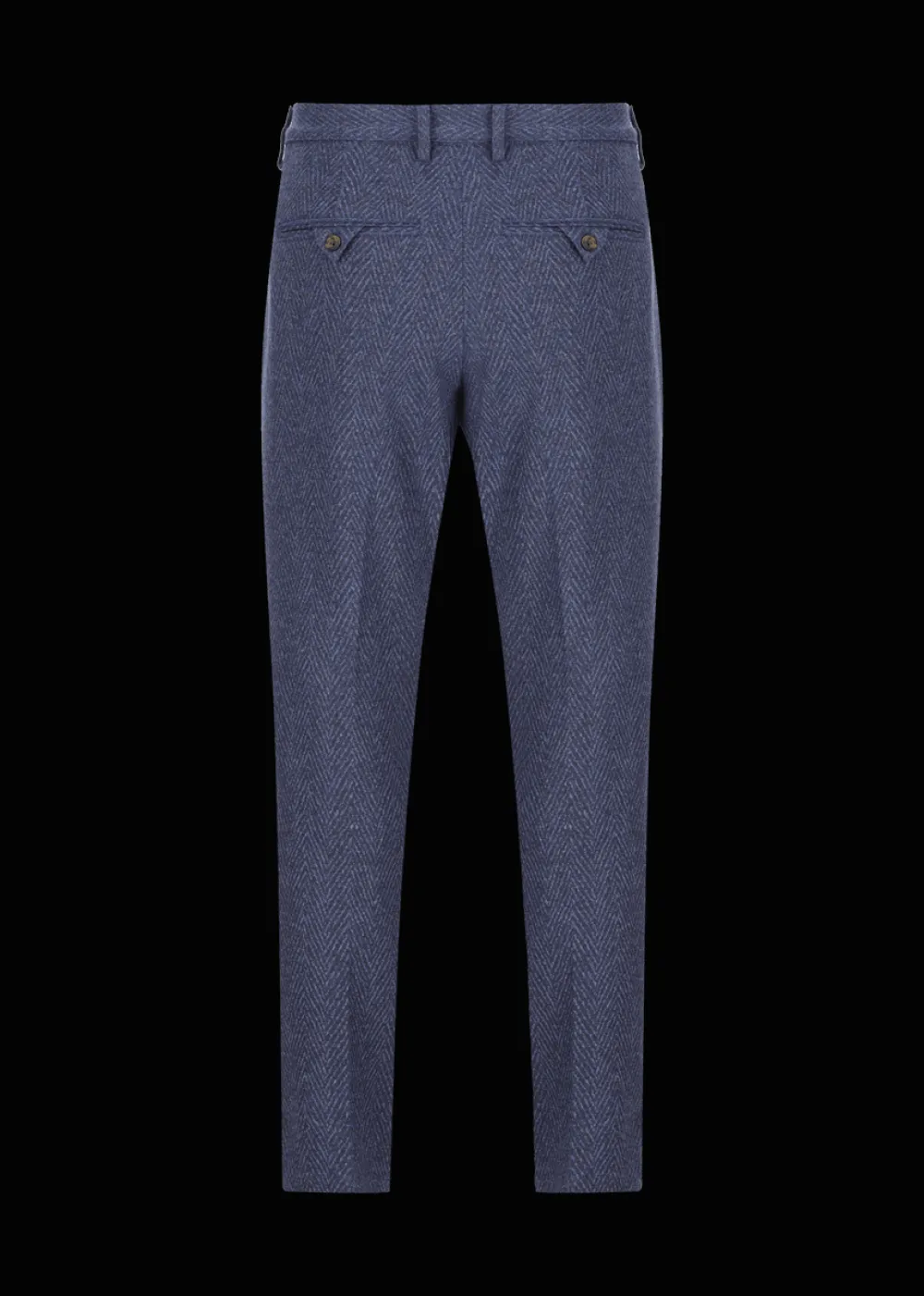 Herkunft: Stoff aus Italien - Besonderheiten: Knöpfe aus echter Steinnuss, mittig verlaufende, leicht hervorstehende Naht am Vorderbein, Logoplakette in Holzoptik an der linken Hüfte