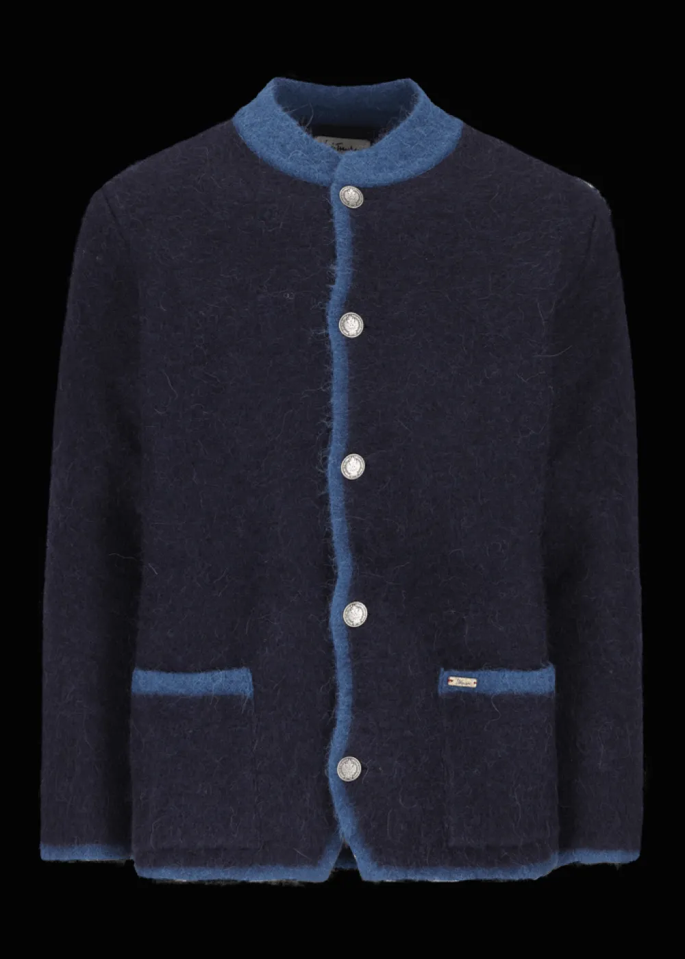 - Diese Outdoor-Walkjacke im Oversized Fit mit Stehkragen besteht aus einer warmen Mischung aus Alpaka- und Schafwolle. Sie ist eine moderne Interpretation des traditionellen Hofer-Jankers, welcher ab der Mitte des 20. Jahrhunderts in Salzburg auf ganz besondere Weise gefertigt wurde. Ihre von Natur aus windabweisende Funktion, ihre Bordüren in Kontrastfarbe und ihre edlen metallischen Knöpfe machen sie zum Herzstück unserer Outerwear.