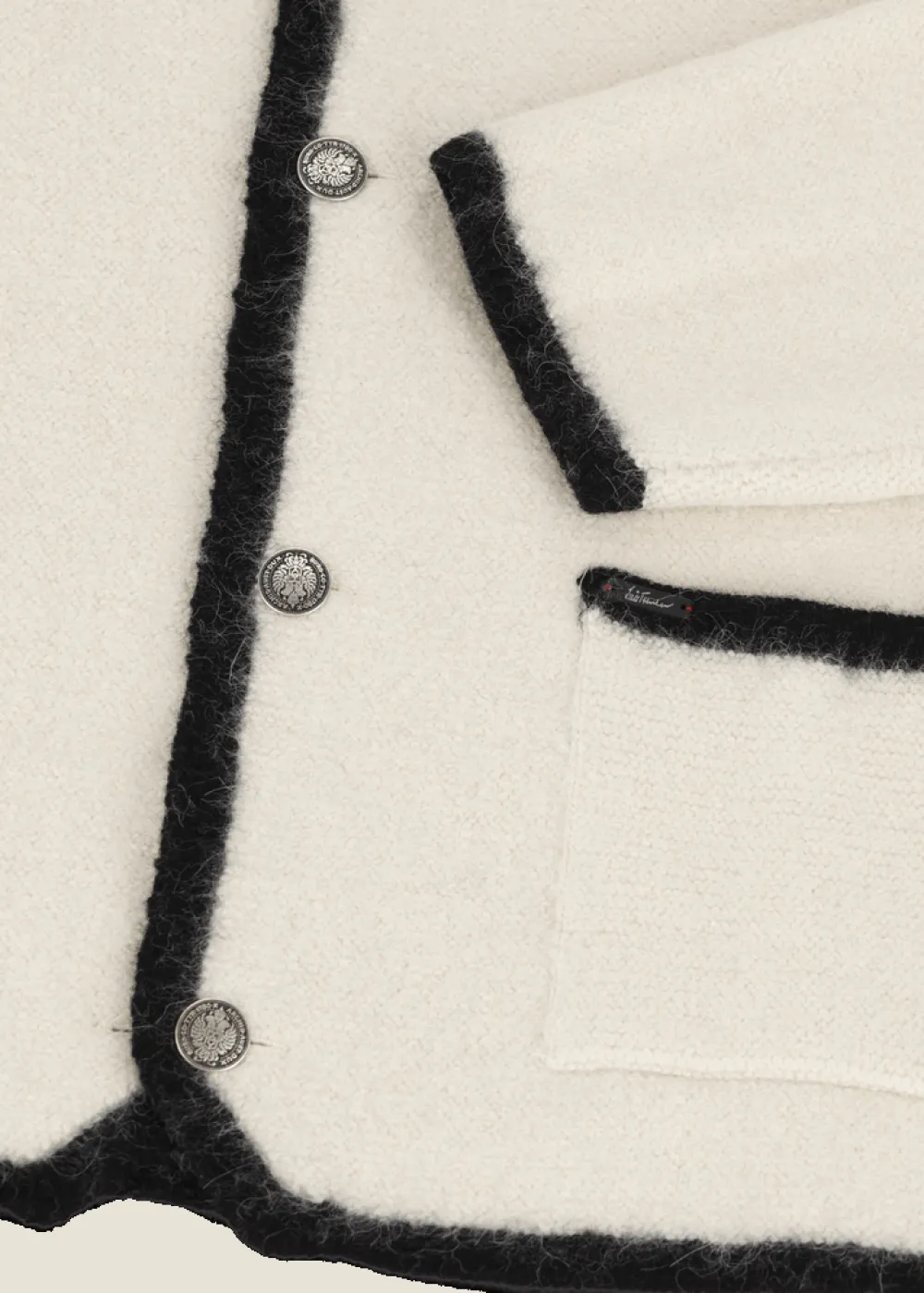 - Diese Outdoor-Walkjacke im Oversized Fit mit Stehkragen besteht aus einer warmen Mischung aus Alpaka- und Schafwolle. Sie ist eine moderne Interpretation des traditionellen Hofer-Jankers, welcher ab der Mitte des 20. Jahrhunderts in Salzburg auf ganz besondere Weise gefertigt wurde. Ihre von Natur aus windabweisende Funktion, ihre Bordüren in Kontrastfarbe und ihre edlen metallischen Knöpfe machen sie zum Herzstück unserer Outerwear.