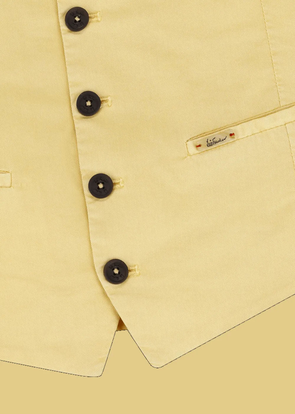 - Diese einreihige Weste im Regular Fit mit V-Ausschnitt besteht aus stückgefärbter Baumwolle mit Stretchanteil und ist ein schlichtes, leicht zu kombinierendes Basic. Sie hat eine 6-Button-Front mit Knöpfen aus echter Steinnuss, sowie vier Paspeltaschen.