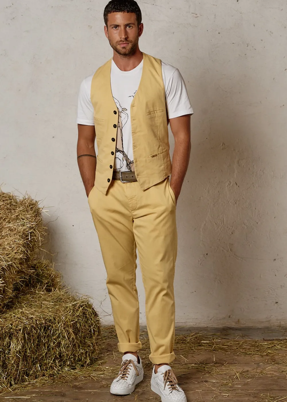 - Diese einreihige Weste im Regular Fit mit V-Ausschnitt besteht aus stückgefärbter Baumwolle mit Stretchanteil und ist ein schlichtes, leicht zu kombinierendes Basic. Sie hat eine 6-Button-Front mit Knöpfen aus echter Steinnuss, sowie vier Paspeltaschen.
