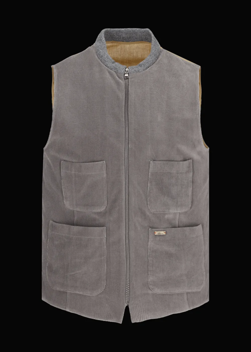- Diese Weste im Regular Fit aus angenehm weichem, elastischem Jersey-Cord hat vier aufgesetzte Taschen, einen Reißverschluss und einen gestrickten Stehkragen. Am Rücken, welcher aus Baumwolle mit dezentem Fischgrätmuster besteht, ist sie in der Weite regulierbar.