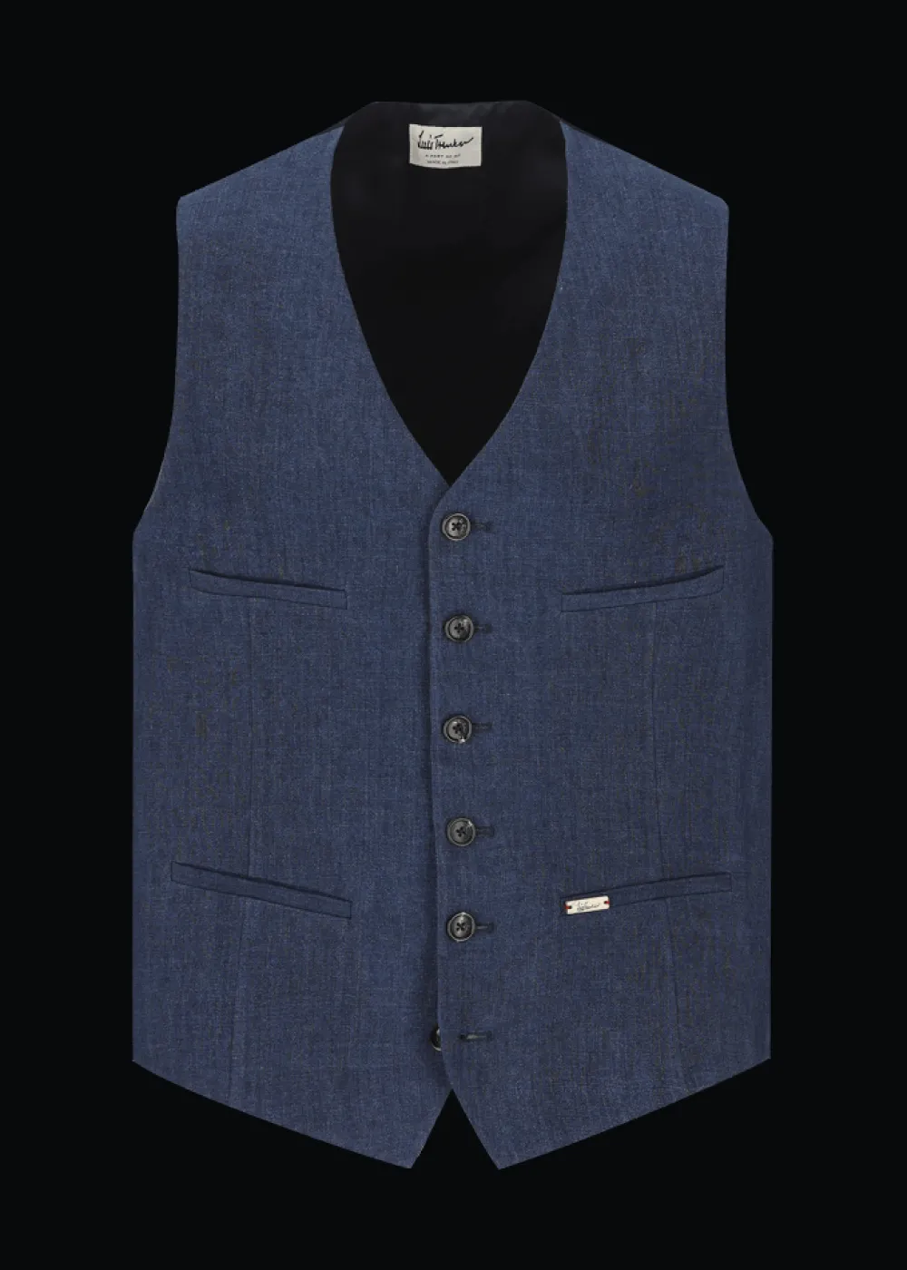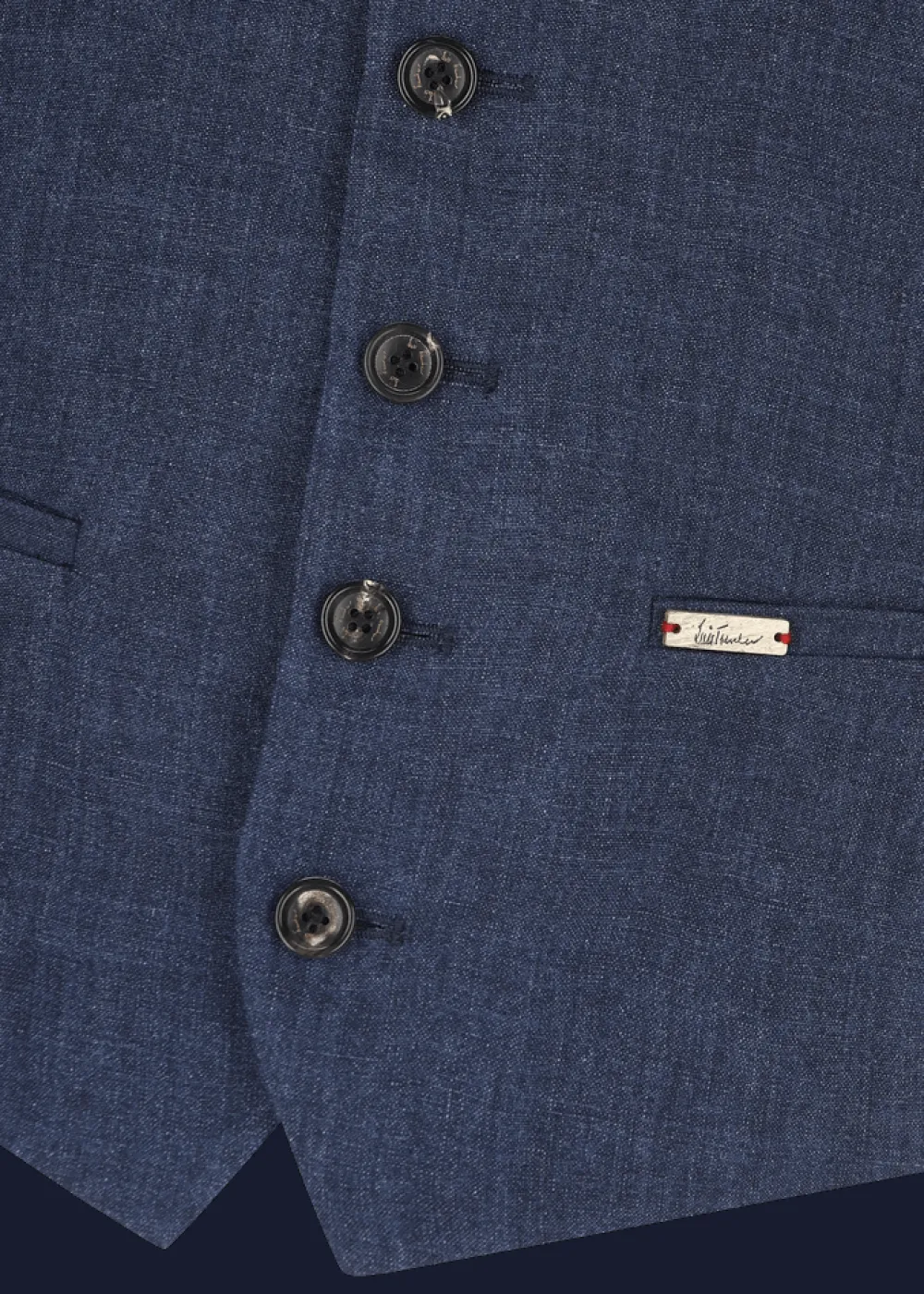 - Diese einreihige, in Italien gefertigte Weste im Regular Fit mit V-Ausschnitt besteht aus reinem Leinen mit Melange-Effekt. Sie strahlt Natürlichkeit und Eleganz aus, was durch die Knöpfe aus echtem Horn und die dezenten Paspeltaschen besonders eindrucksvoll betont wird.