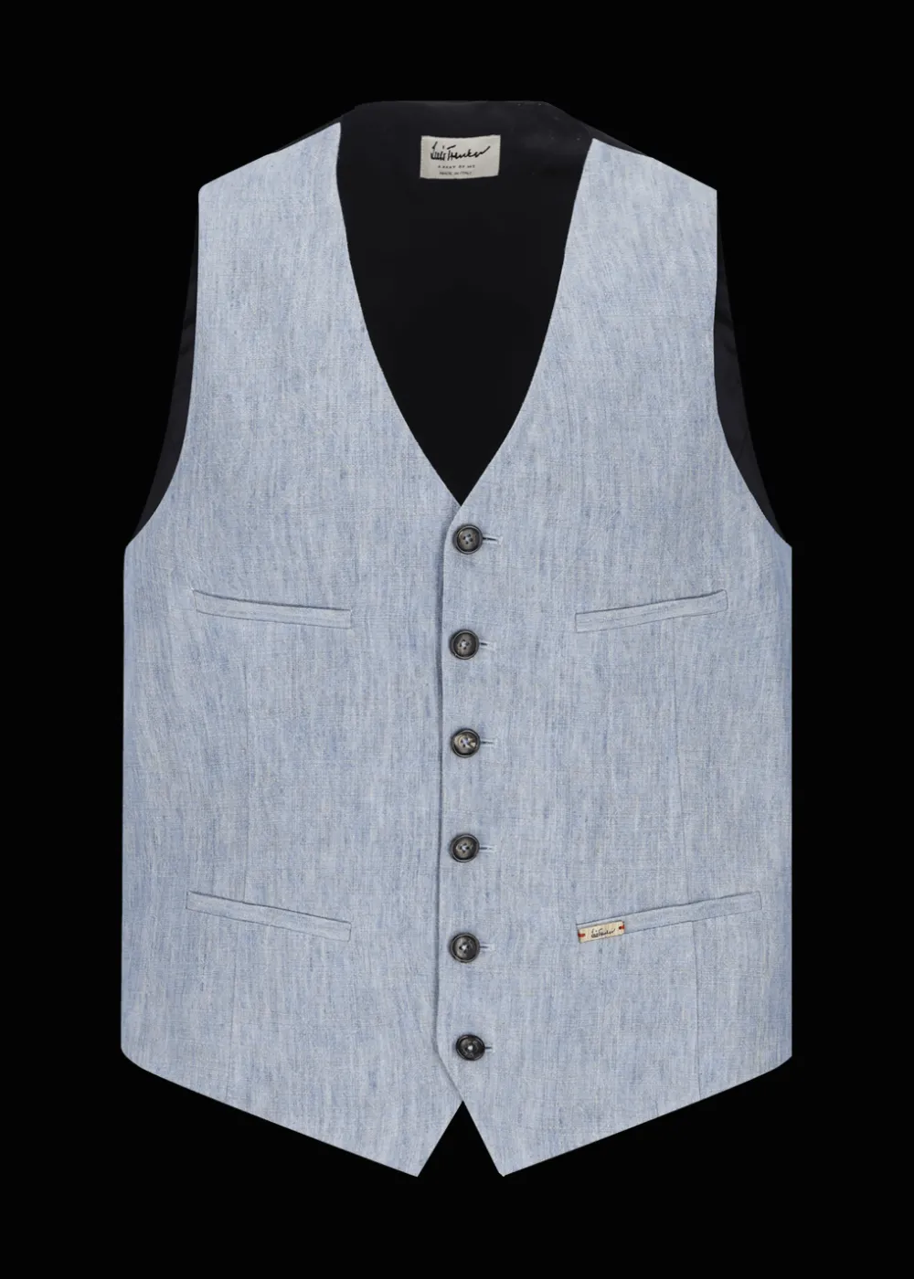 - Diese einreihige, in Italien gefertigte Weste im Regular Fit mit V-Ausschnitt besteht aus reinem Leinen mit Melange-Effekt. Sie strahlt Natürlichkeit und Eleganz aus, was durch die Knöpfe aus echtem Horn und die dezenten Paspeltaschen besonders eindrucksvoll betont wird.