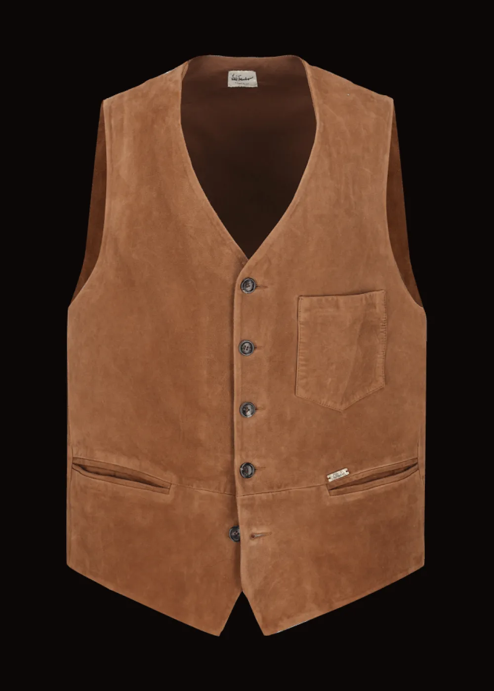 - Diese einreihige Weste im Comfort Fit mit V-Ausschnitt besteht aus kostbarem Ziegen-Wildleder in leichter Distressed-Waschung, welche ihr einen besonders lebhaften Effekt verleiht. Ihre Knöpfe aus Echthorn und ihr Rücken aus Baumwolle runden ihr edles Erscheinungsbild ab.