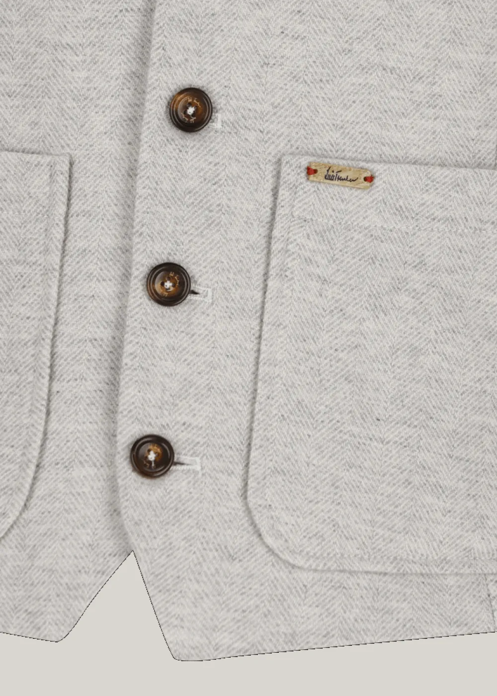 Herkunft: Stoff aus Italien - Besonderheiten: Logoplakette in Holzoptik an der linken unteren Tasche