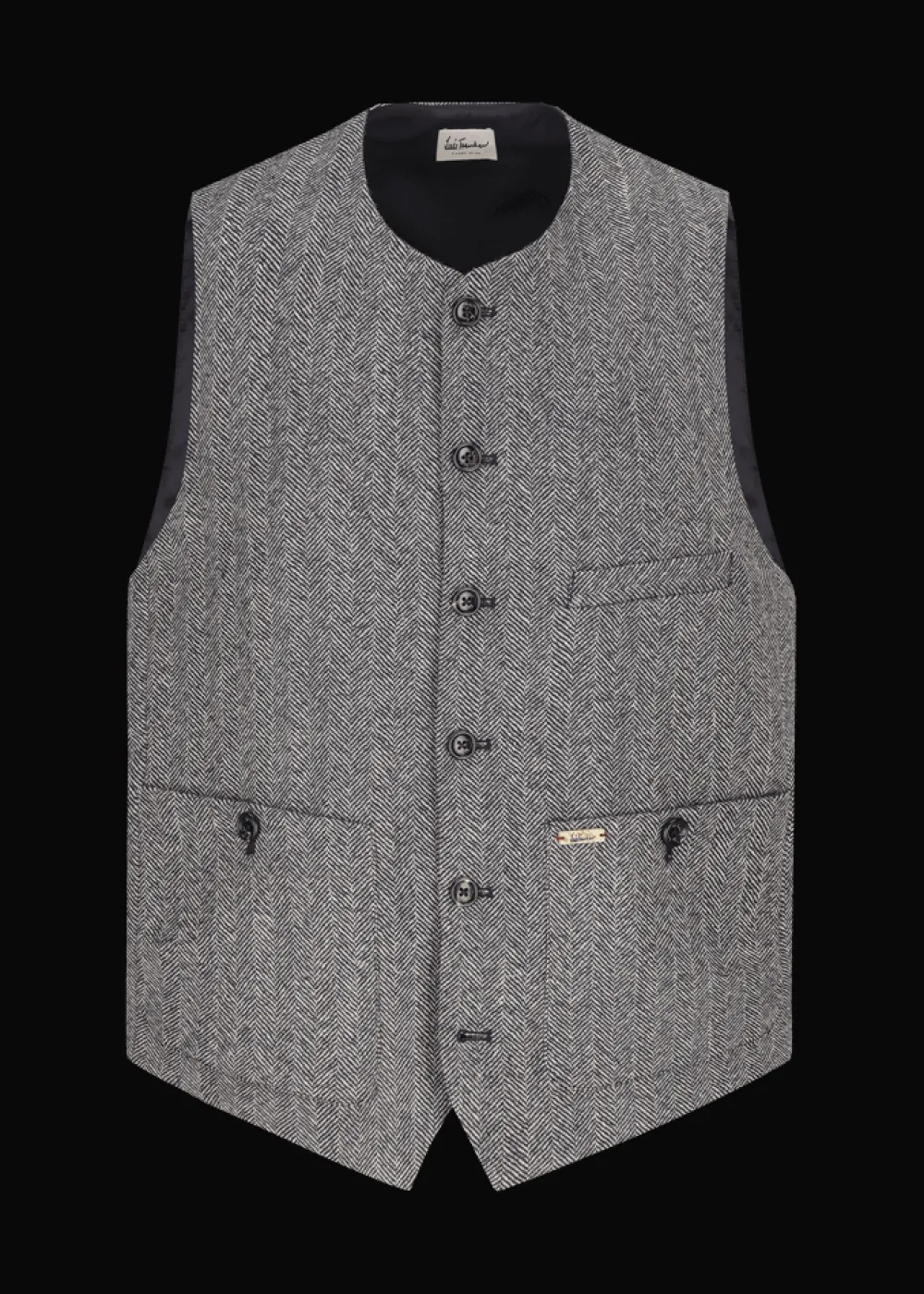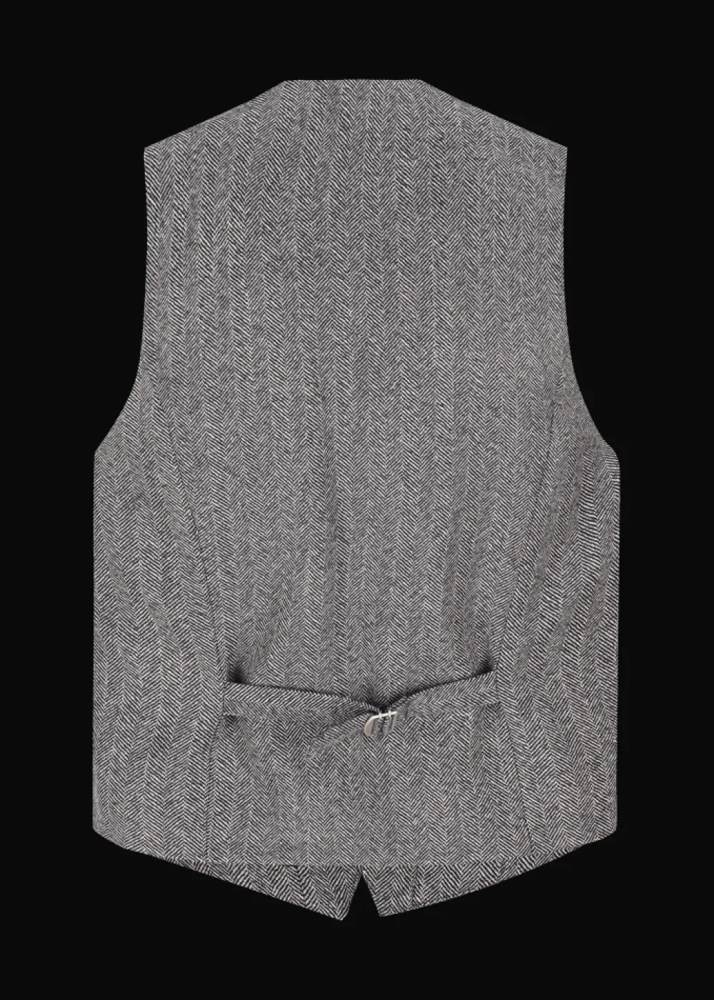 - Diese Weste im Regular Fit mit Rundhalsausschnitt besteht aus reiner Schurwolle mit Fischgrätmuster. Sie hat eine 6-Button-Front mit Knöpfen aus Echthorn, eine Brusttasche und zwei aufgesetzte Taschen mit Knopfverschluss. Am Rücken ist sie mit einer Schnalle verstellbar, sodass sie sich Deiner individuellen Körperform perfekt anpasst.