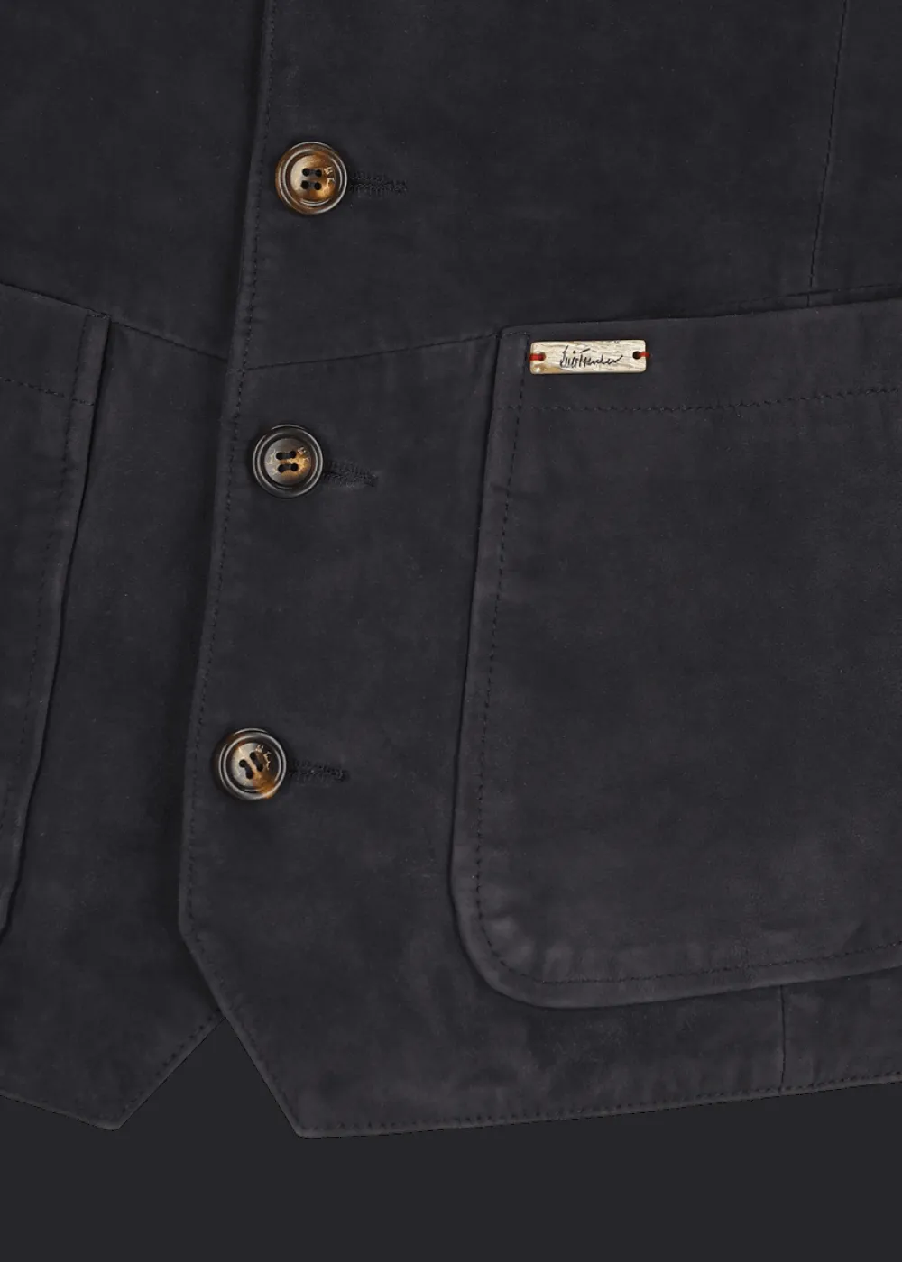 Verschluss: Einreihige 7-Button-Front mit Knöpfen aus Echthorn
