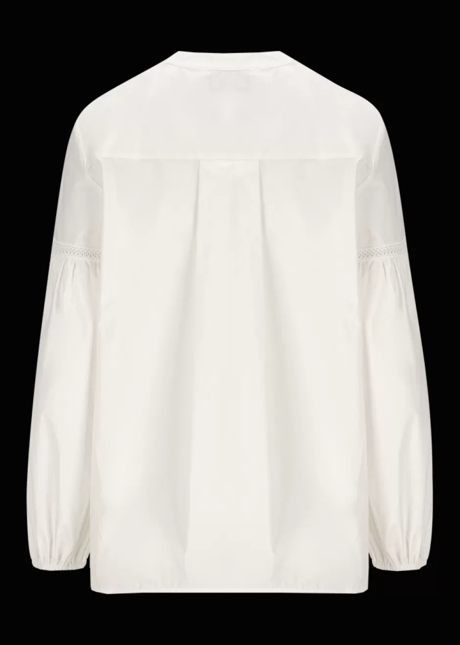 - Diese Bluse im Comfort Fit mit langen Ballonärmeln, Rundhalsausschnitt und kurzer Knopfleiste besteht aus reiner Baumwolle. Ihre Bordüre mit Lochstickerei an Knopfleiste und Ärmeln, sowie die Knöpfe aus echtem Perlmutt machen sie zu einem eleganten Basic.