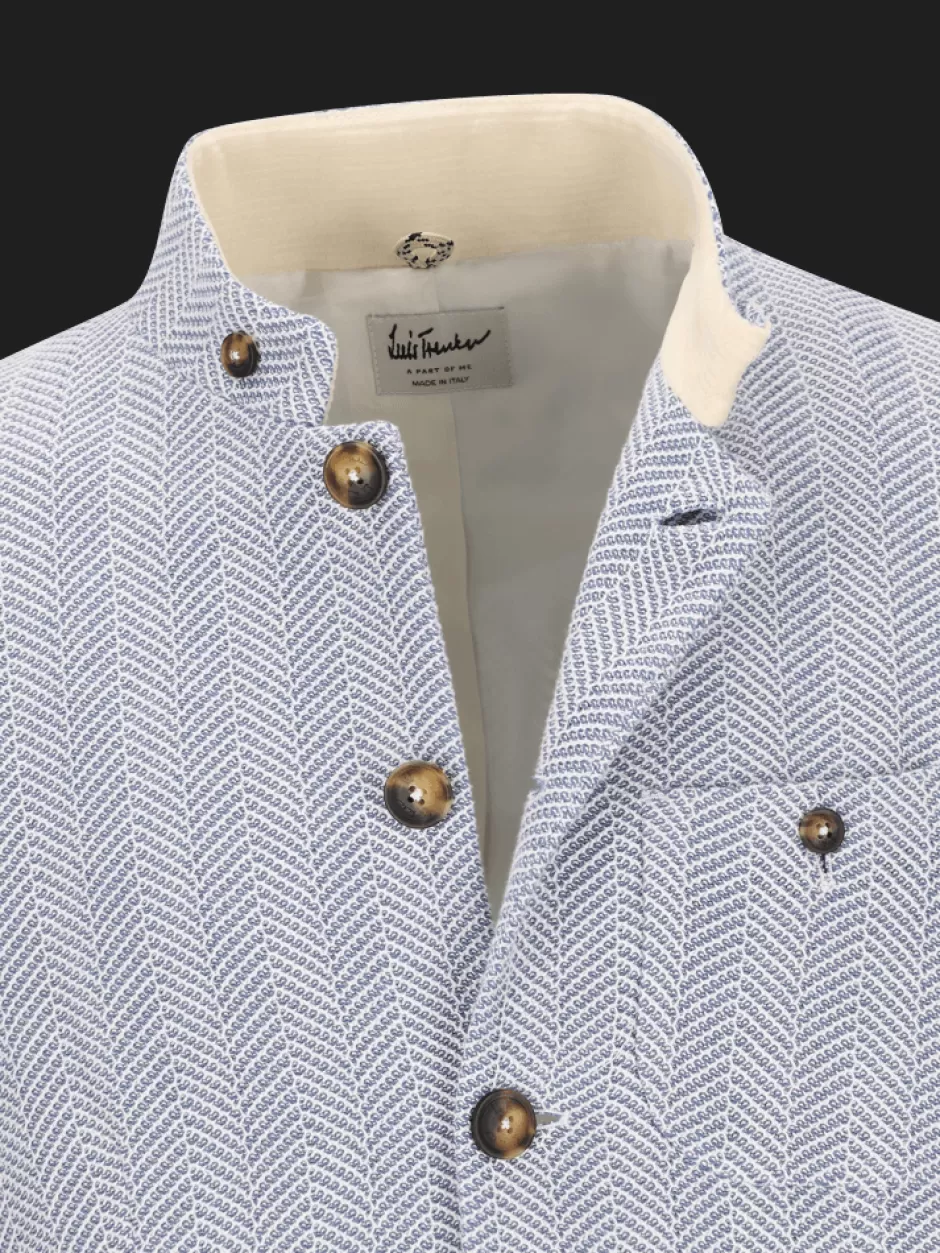 - Dieses klassische Blazermodell im Regular Fit mit Stehkragen ist ein fester Bestandteil der Markengeschichte von Luis Trenker: Vom ersten Moment an hat es die Herrenkollektion geprägt und ist seither in jeder Saison vertreten. DieseVariante besteht aus reiner Baumwolle und ist mit ihrem Fischgrätmuster ein besonders zeitloses Lieblingsteil.
