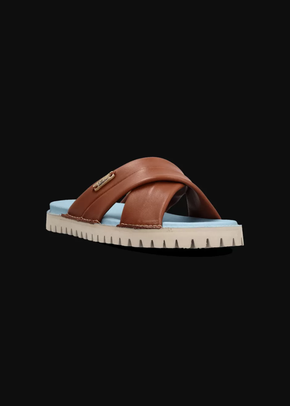 - Diese handgefertigte Sandale besteht aus weichem Glattleder und sorgt mit ihren zwei breiten, gekreuzten Riemen für perfekten Halt und Tragekomfort.